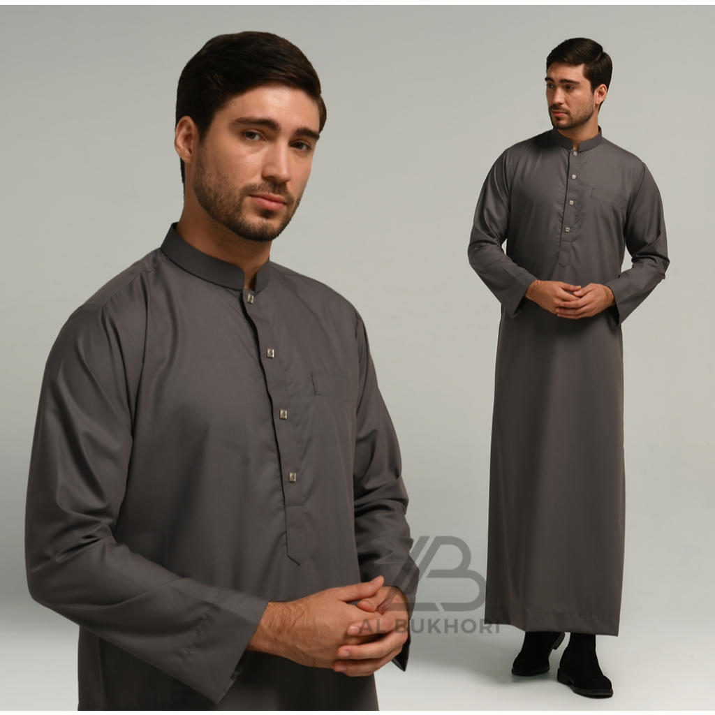 Al Bukhori - Tencel Gamis Thobe Jubah Pria Bodyfit Reguler Dewasa Premium Lengan Panjang - Jubah Khalid