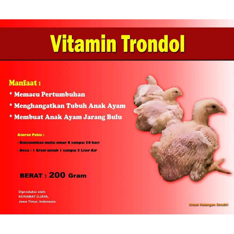 VITAMIN TRONDOL - Ayam Gemuk dan Trondol Jarang Bulu - SUPLEMEN dan VITAMIN AYAM BROILER - MASA PERTUMBUHAN