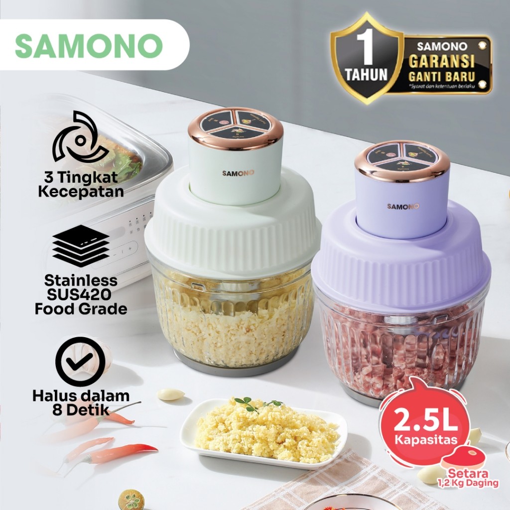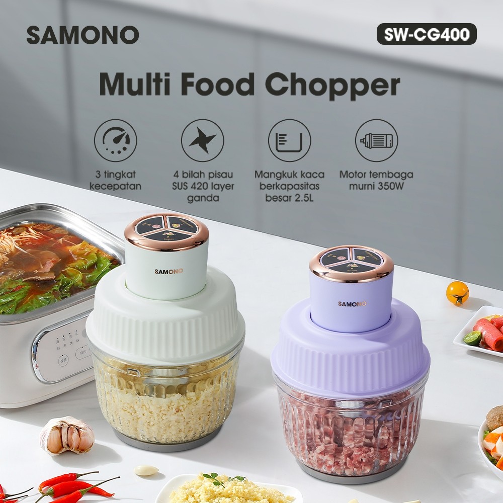 [Mall] CHOPPER SAMONO 2,5L Kaca 3 Speed 350 Watt 4 SW-CG400 Penghalus Bumbu Daging Serbaguna PENGGILING DAGING