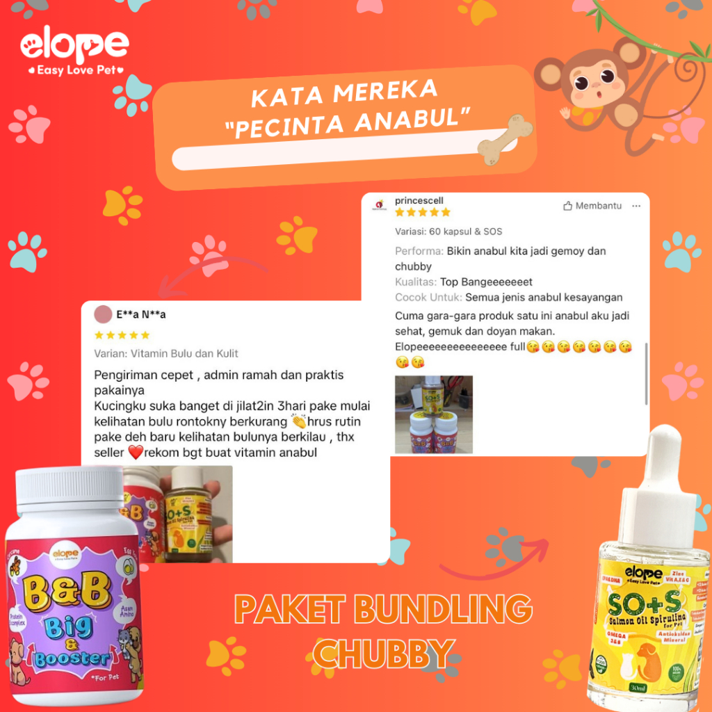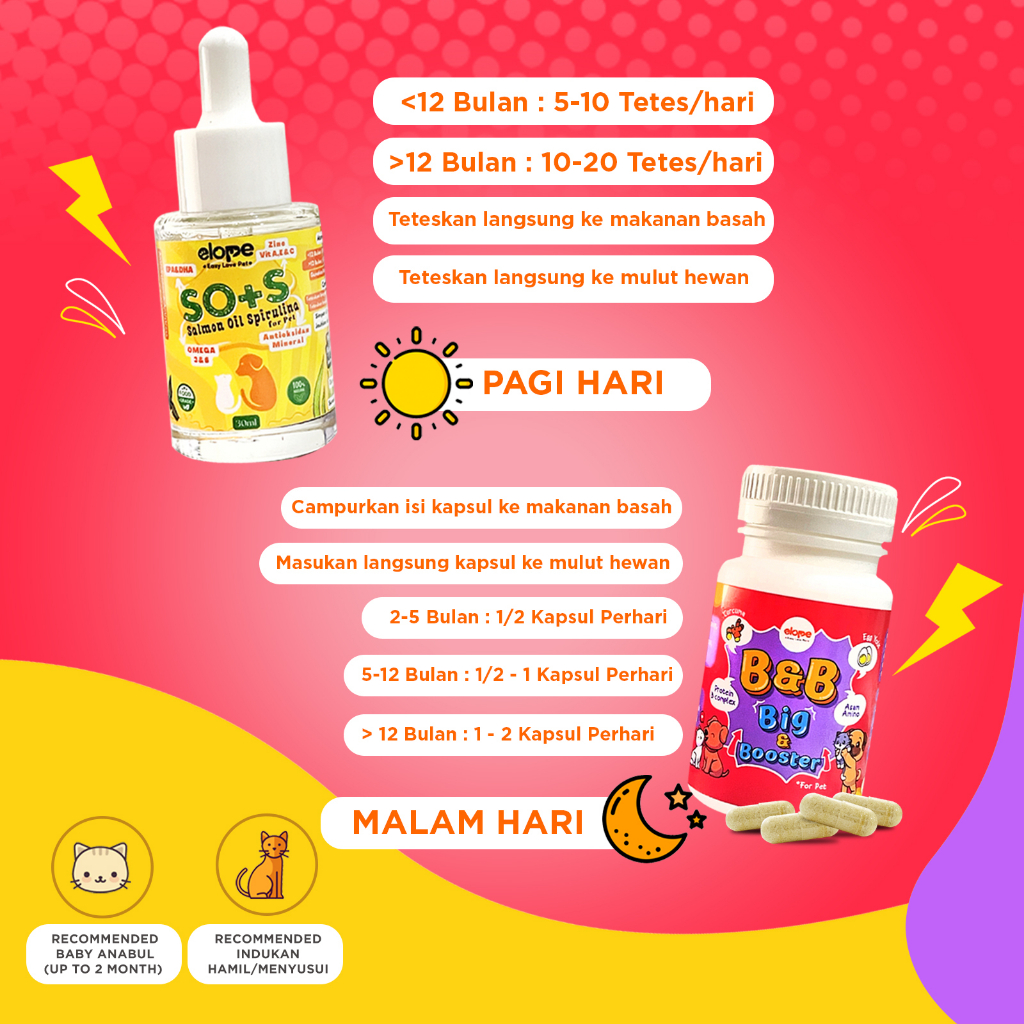 ELOPE Bundling Suplemen Vitamin Nafsu Makan Salmon Oil Spirulina Minyak Ikan Anabul Anjing Kucing