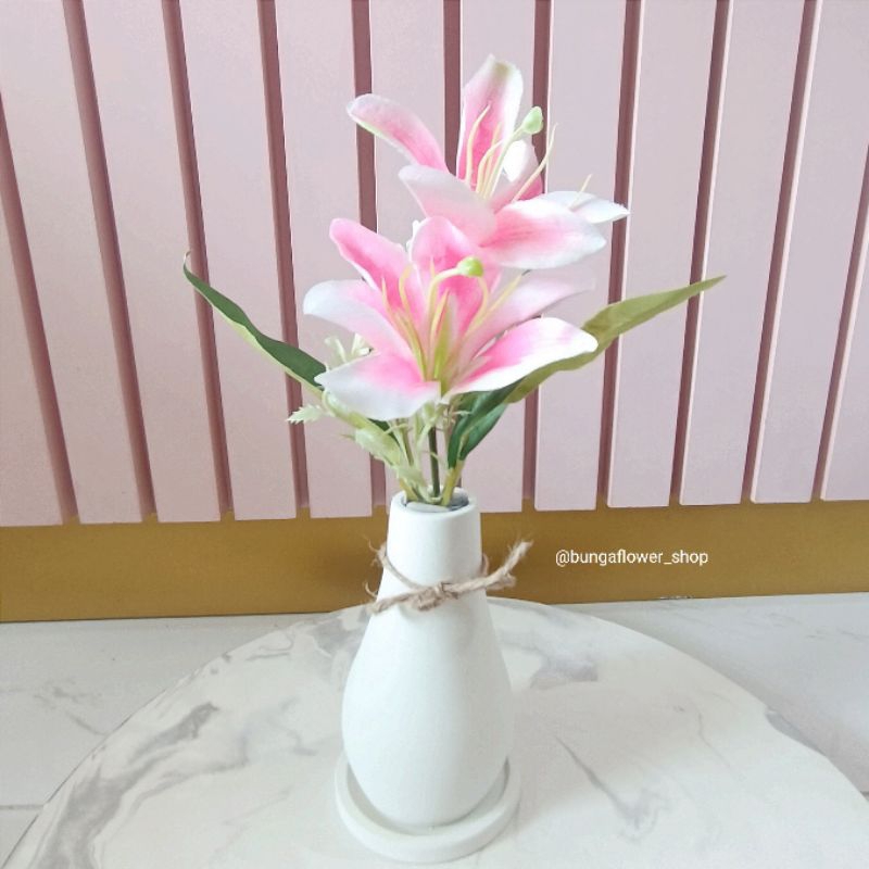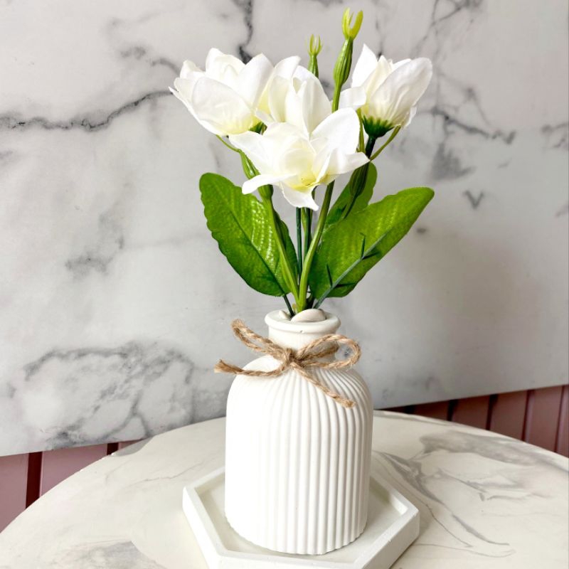 1 Set Bunga Aesthetic Kenanga Artificial + Vas + Tatakan Hexagon Dekorasi Rumah / Pajangan Props Foto Souvenir Gift Murah