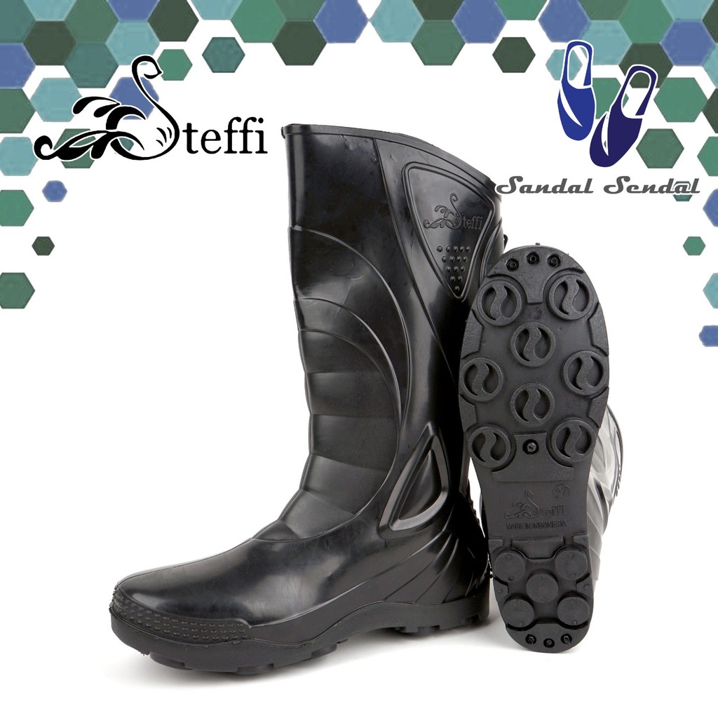 Sepatu Boot Tinggi Steffi Boots SPORT Hitam Karet Lentur Anti slip & air Proyek Perkebunan