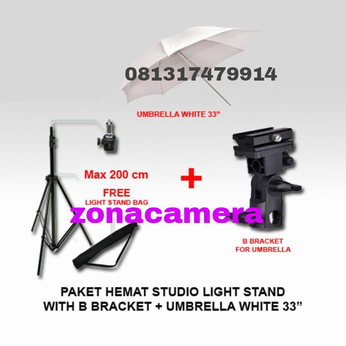 PAKET LIGHTSTAND STUDIO 2M + FLASH HOLDER + PAYUNG PUTIH STROBIST