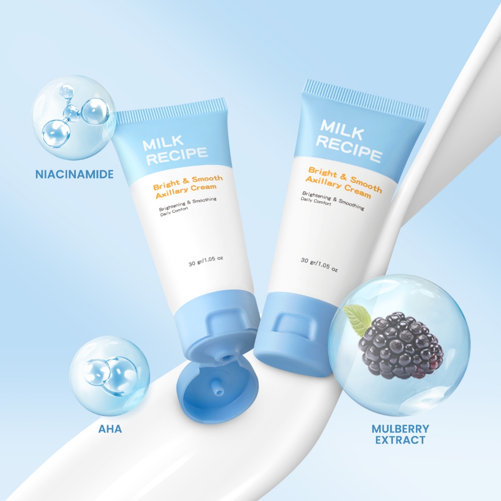 Milk Recipe Hair Removal Cream + Bright & Smooth Axillary Cream - Paket Krim Perontok Bulu Ketiak & Pencerah Ketiak Glow