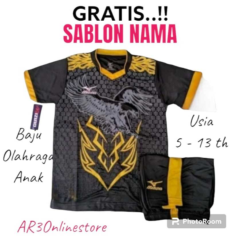 ( FREE SABLON NAMA ) Baju olahraga anak usia 5-13 tahun kaos sepak bola futsal badminton bulutangkis voli tenis meja terbaru