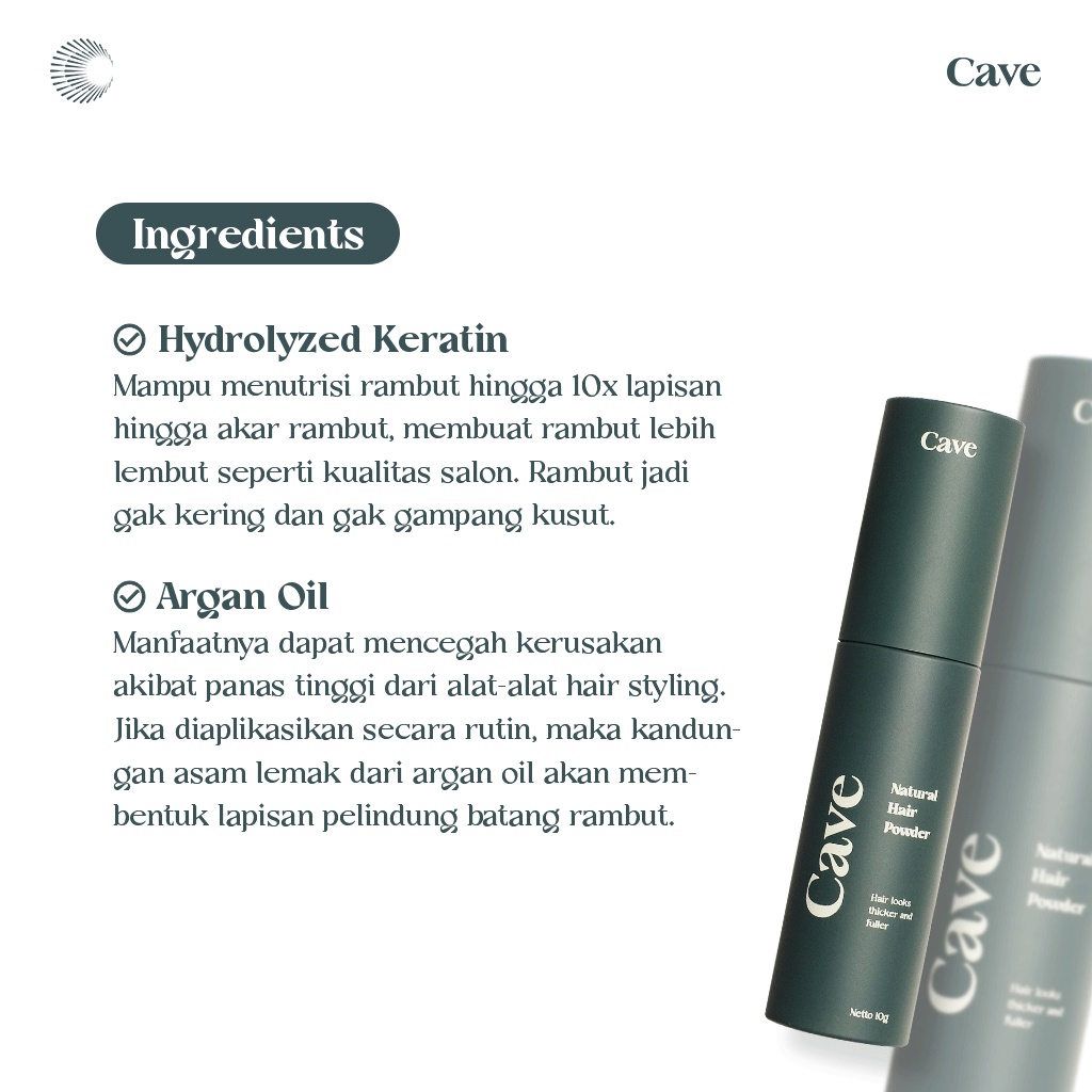 Cave Natural Hair Powder 10 gr - Bedak Styling Rambut Pria Membuat Bervolume Tebal & Anti Lepek