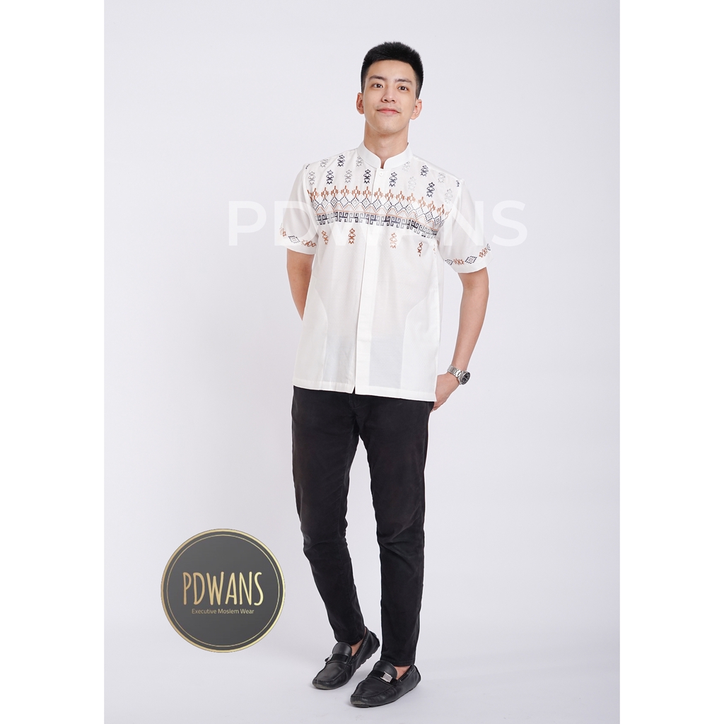 Baju Koko Muslim Lengan Pendek Putih Bordir Pdwans - Bmt24