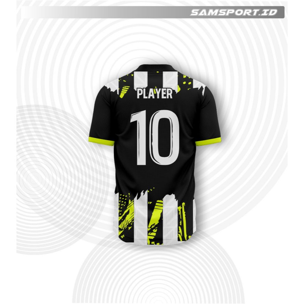 Kaos Jersey Sepakbola Futsal Custom Printing Atasan Setelan Dewasa Anak SM06 Blak Yellow