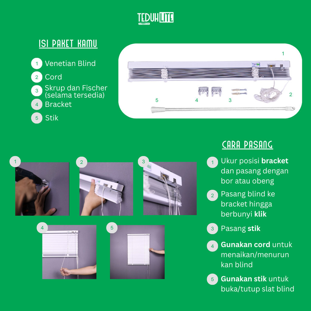 TEDUH LITE - Venetian Blind PVC - Tirai Gulung – Gorden Jendela Aesthetic PVC Ready Stok