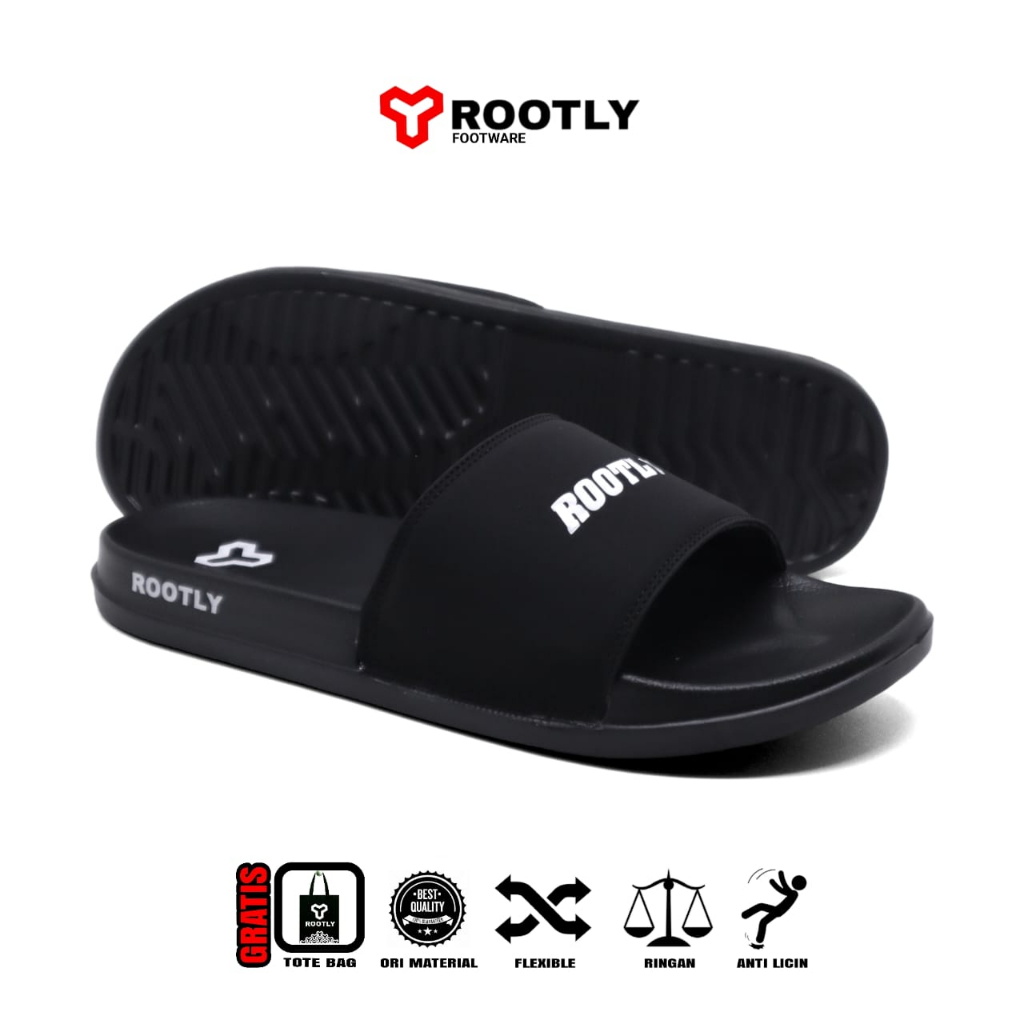 Rootly - Sandal Slipper Pria Simple Black white Terlaris