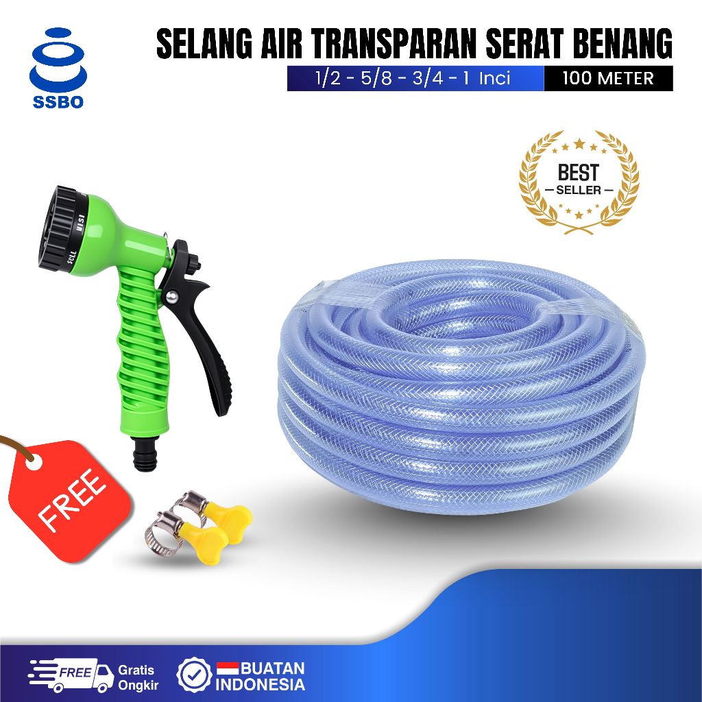 SSBO Selang Air 100 Meter/Selang Air 1/2 5/8 3/4 1 Inch/Selang Air Taman Serat Benang Berkualitas