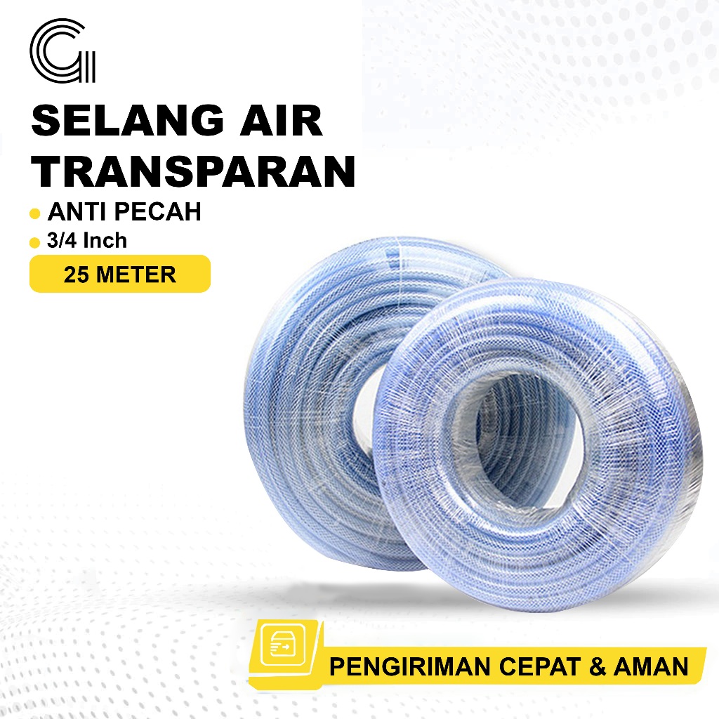 SELANG GEMUK Selang Air 25 Meter 3/4 Inch Selang Air Transparan Bening Selang Air Cuci Motor Mobil Selang Air Taman Lent