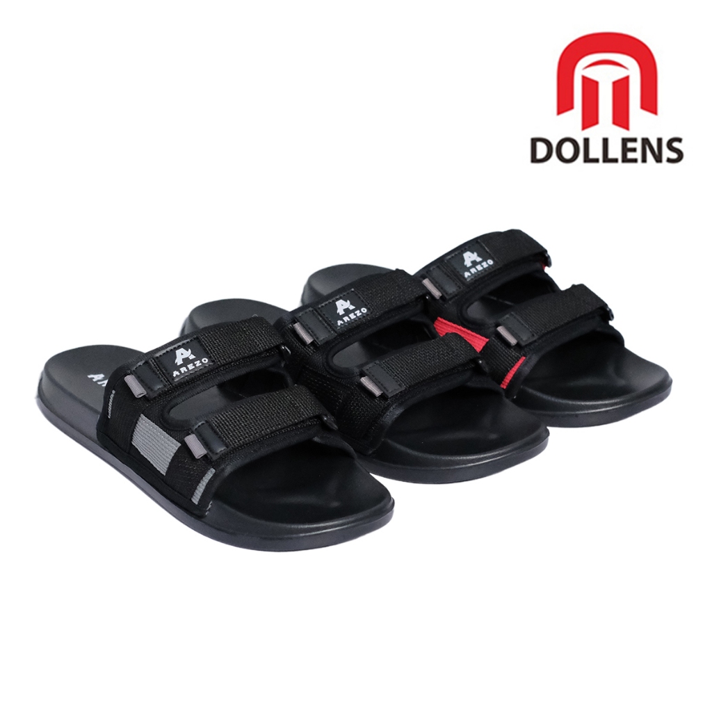 Sandal Slop Pria Distro Strap Aesthetic Arezo - Hitam/Abu-abu/Merah