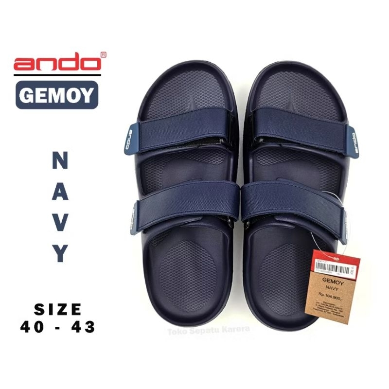 ANDO Sandal Selop Kokop Cowok Karet Casual Fashion Gemoy Hitam Navy 38 sd 44 Terbaru