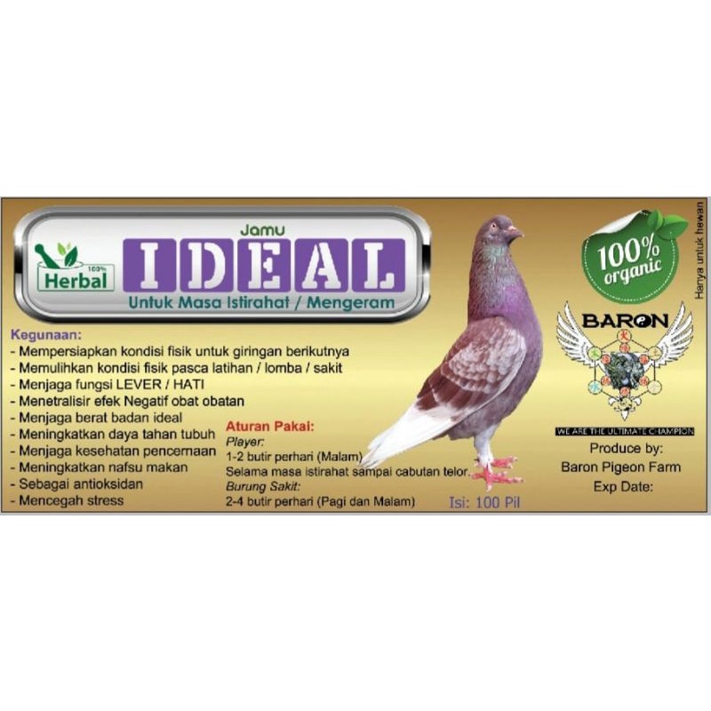 Jamu Ideal Merpati Baron Untuk Masa Istirahat atau Mengeram Isi 100 Butir