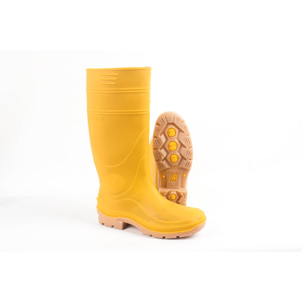 Sepatu Boot Tinggi AP BOOTS AP TERRA 1 Kuning Karet Lentur Anti Slip Air Lokal Nyaman Kontruksi Proyek