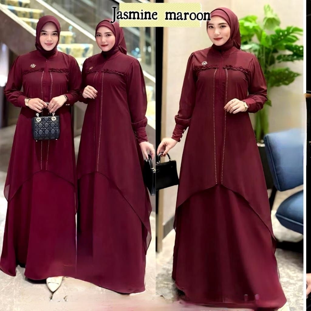 Gamis Pesta Jasmine Dress Lebaran 2026 Gamis Simple Mewah Elgant Bahan Ceruty Premium Muslim Gamis Kondangan