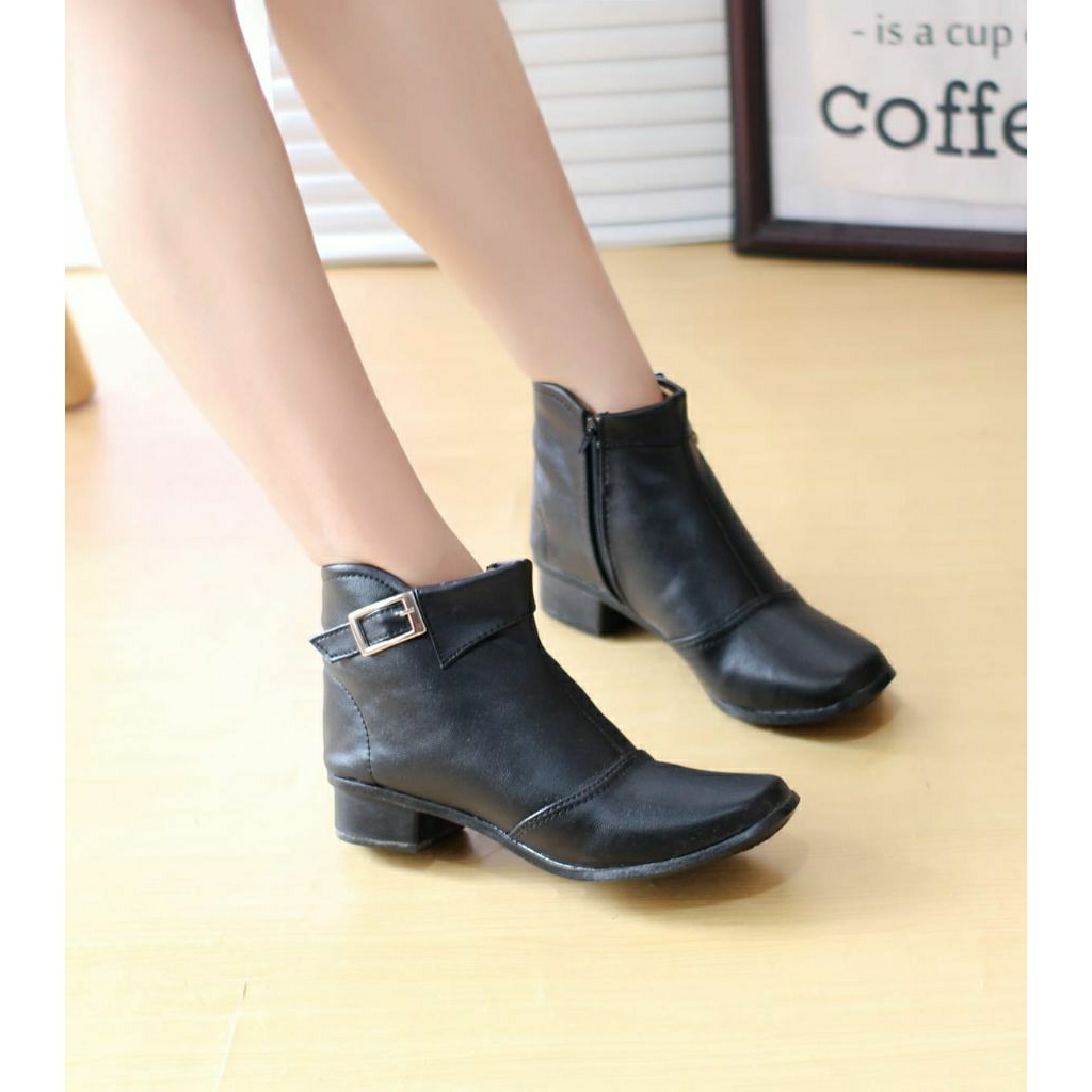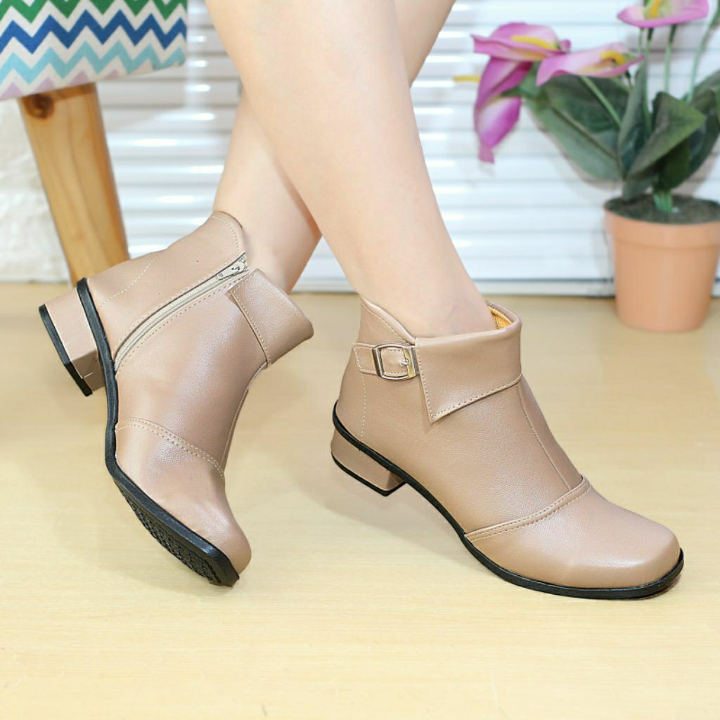 Sepatu Boots Wanita Sintetis Resleting Hak 3cm