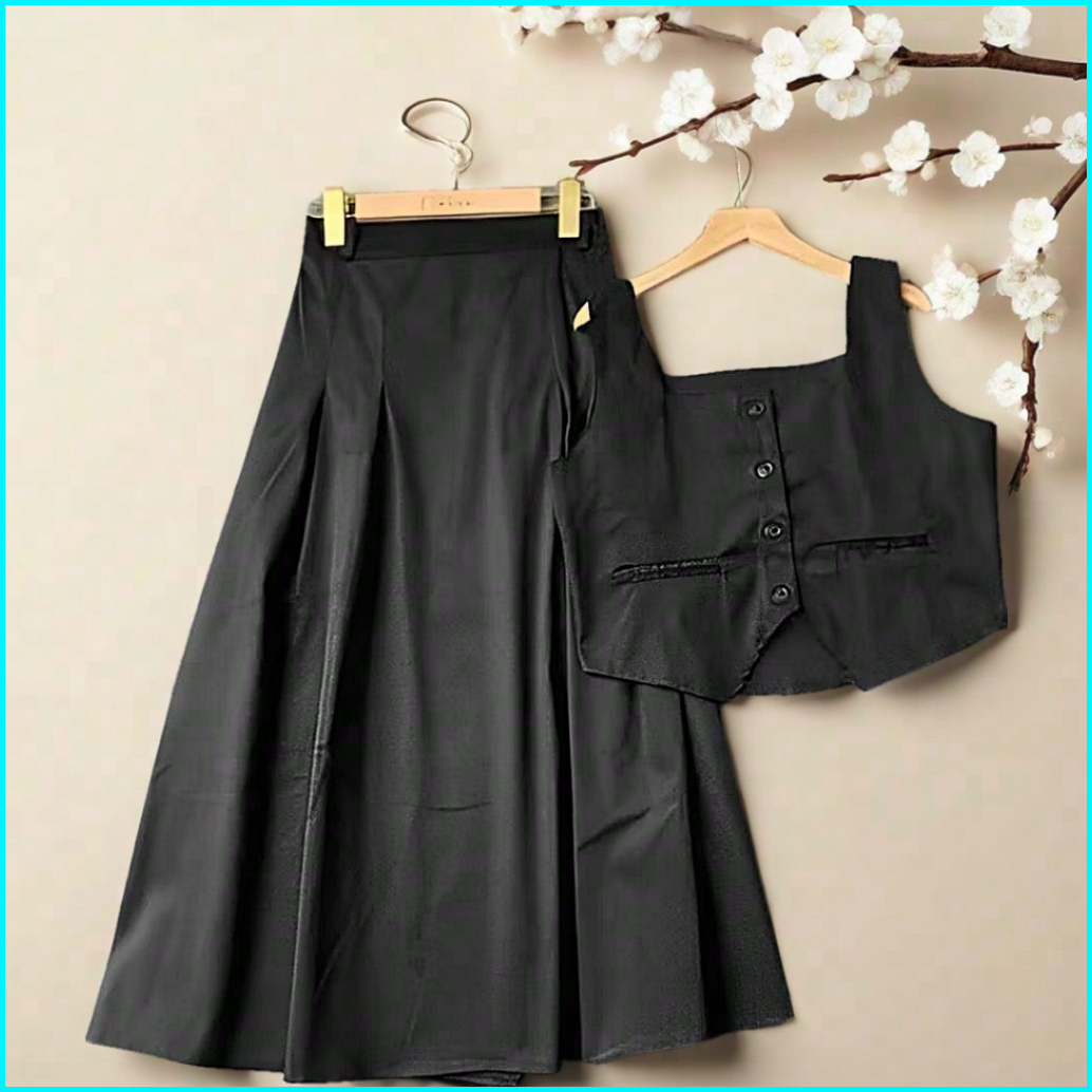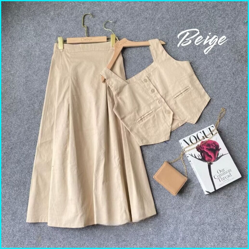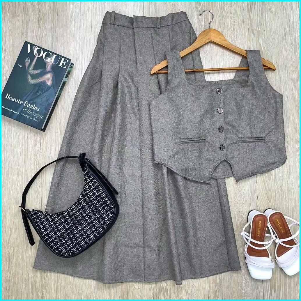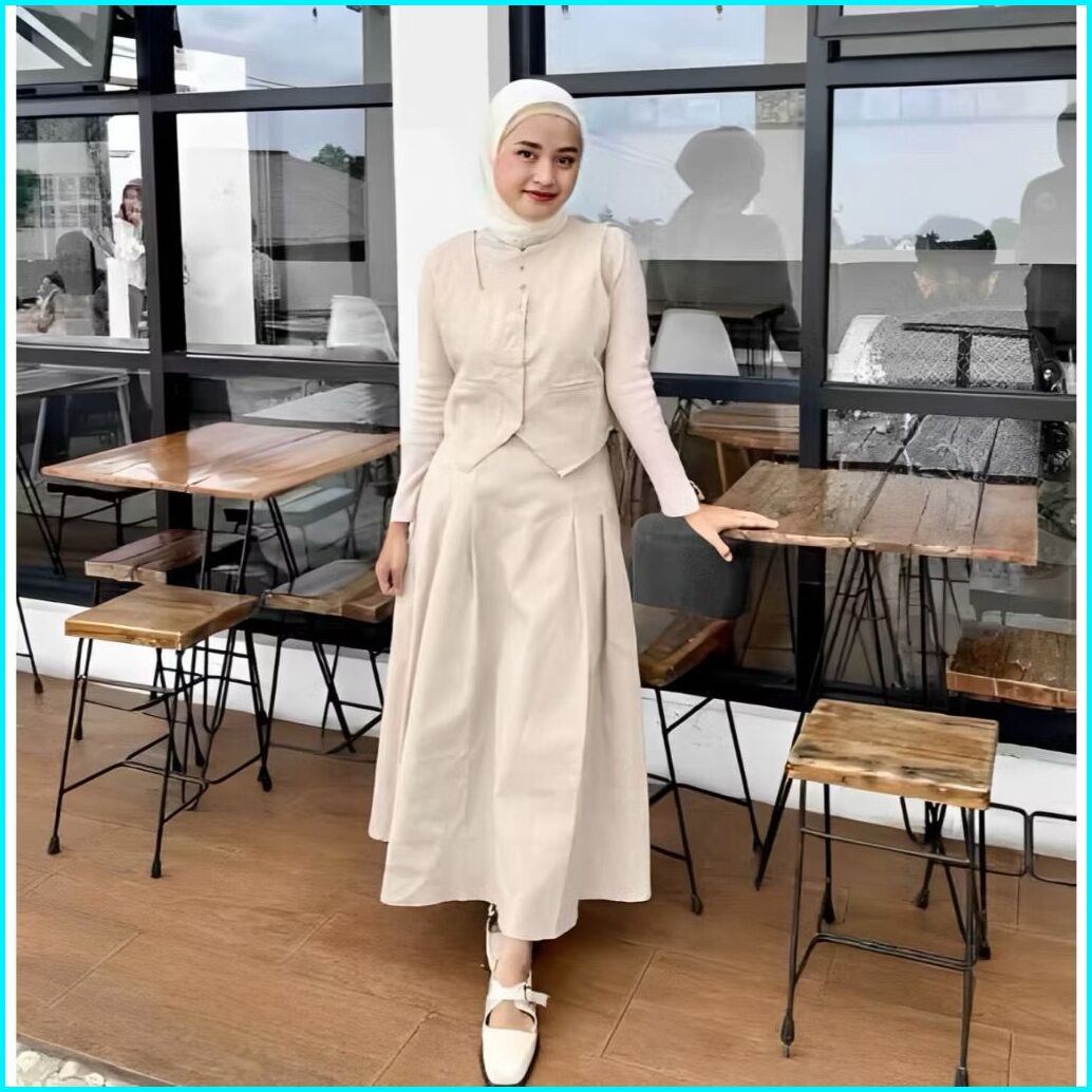 Setelan Vest Dan Rok Korean Style One Set Rompi And Skirt Blazer Wanita Kekinian Premium