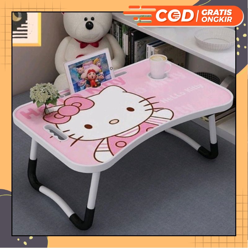 AJSSTORE Meja Belajar Portabel Meja Laptop Lipat Karakter dan Polos