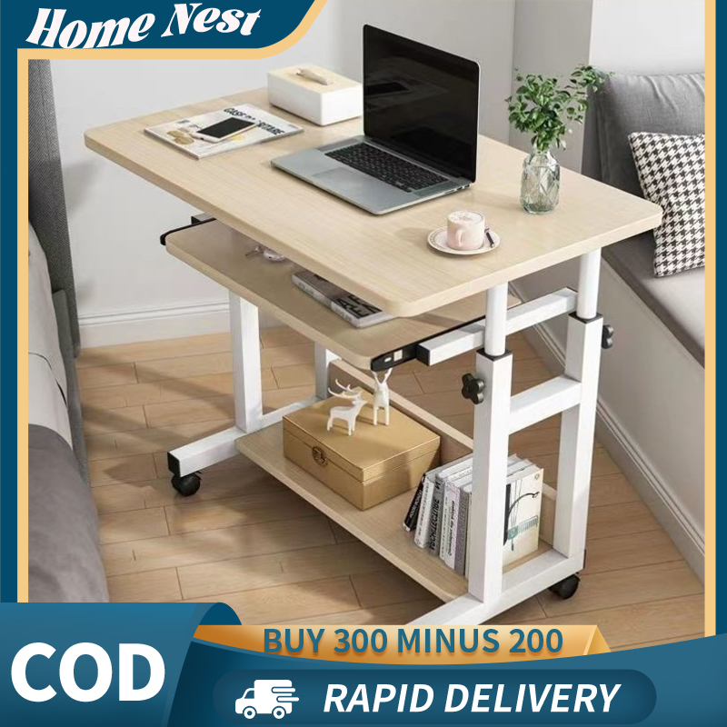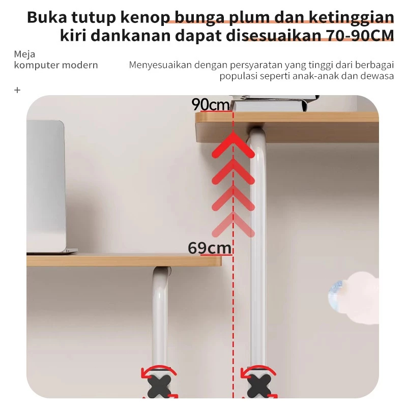 Meja Laptop Lipat 2 in 1 Serbaguna | Tinggi Dapat Diatur + Roda, Untuk Standing Desk & Meja Samping Tempat Tidur, Ringan