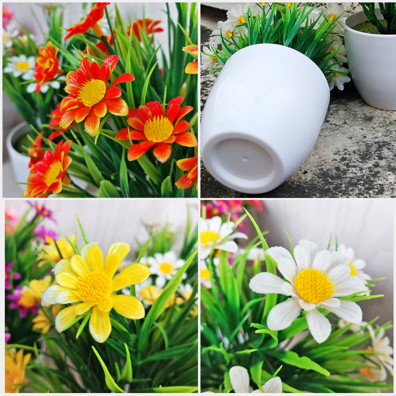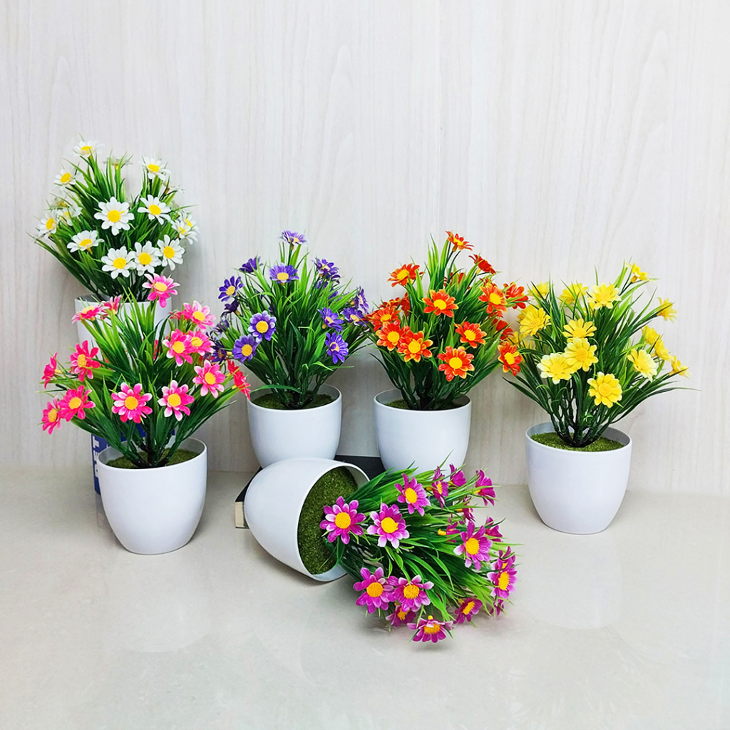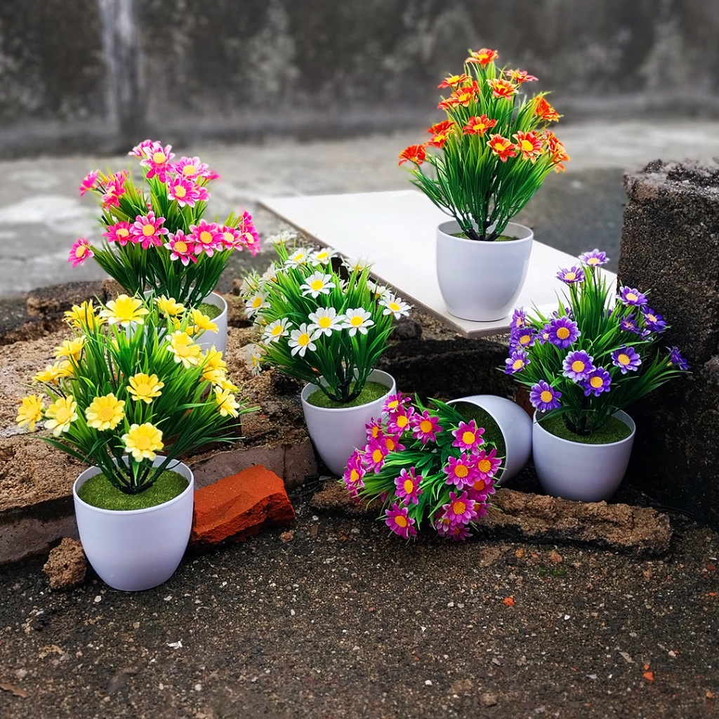 Tanaman Hias Plastik Bunga Krisan Daisy Hiasan Dekorasi Tamu Rumah Ornamen Pot Artificial Import PBP24