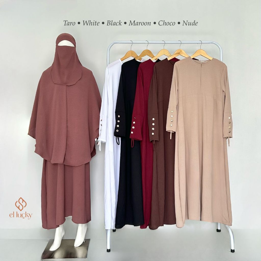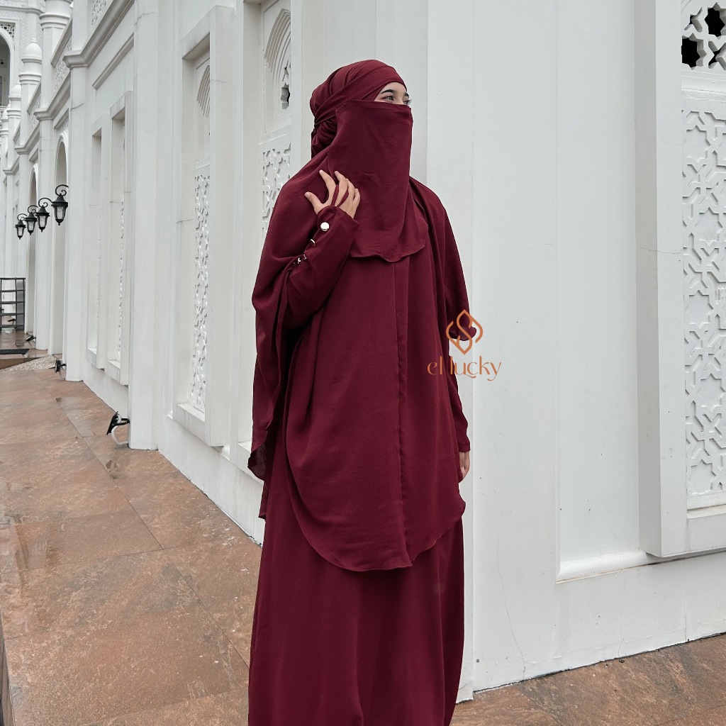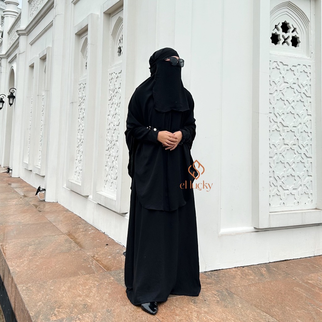 Rauda Abaya Set Gamis Syari Dengan French Khimar Panjang + Niqab Bahan Crinkle
