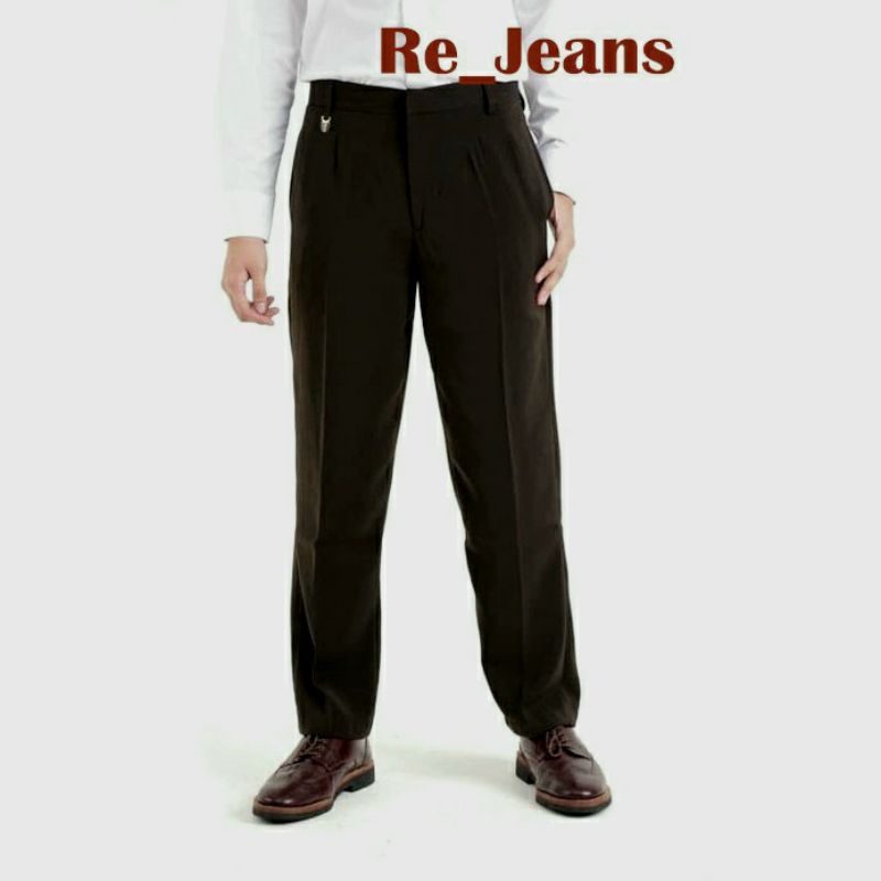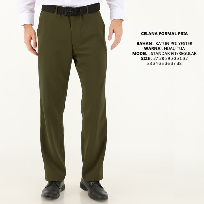 CELANA BAHAN PRIA FORMAL STANDAR WARNA HITAM, DONGKER, ABU