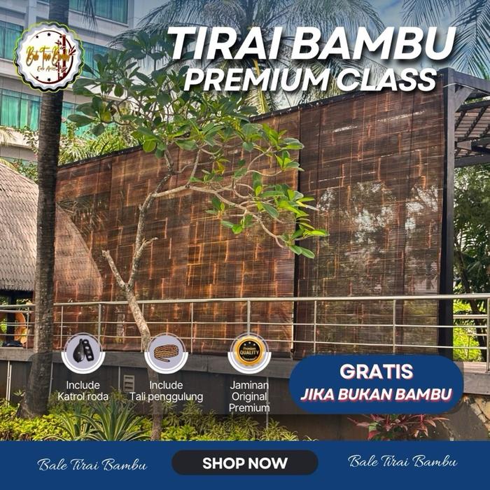 PREMIUM ASLI TIRAI KREY BAMBU KULIT UKURAN L-2M X T-3M SUDAH VERNIS