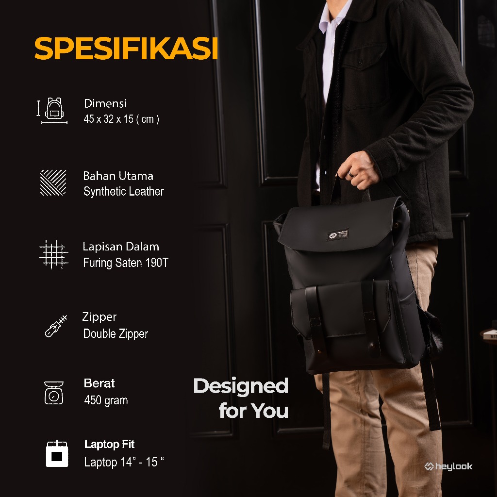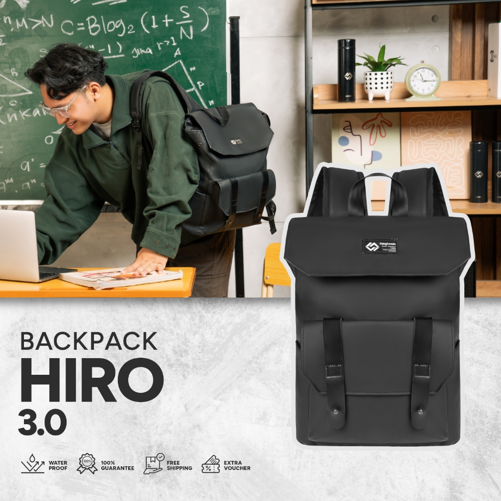 FLASH SALE New Arrival Tas Ransel Pria HIRO 30 Leather Tas Laptop Punggung Water Resist Backpack Cowok Kulit Tas Leptop Sekolah Kuliah Kerja (H