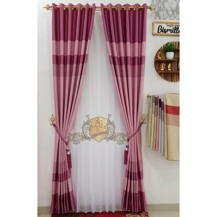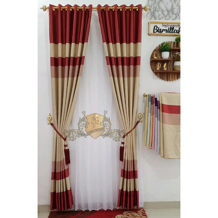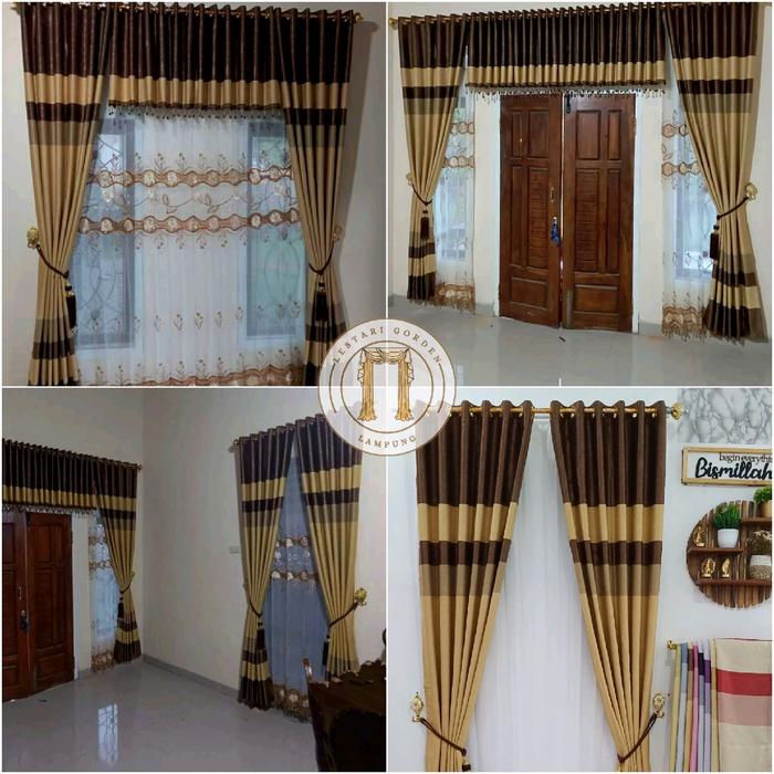 GORDEN SET POLOS KOMBINASI (2 GORDEN + 1 PONI) PINTU DAN JENDELA PUTIH TAHAN DEBU BROWN TIRAI HORDENG CURTAIN KAIN - ABU, SET PONI 6 GELOMBANG