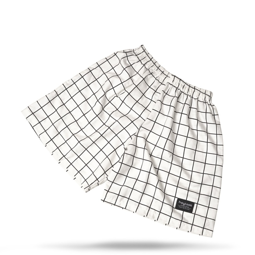 FLASH SALE Celana Pendek Pria Short Pants Boxer Motif SQUARE Celana Kotak Garis Cowok Santai Celana Tartan SQUARE WHITE