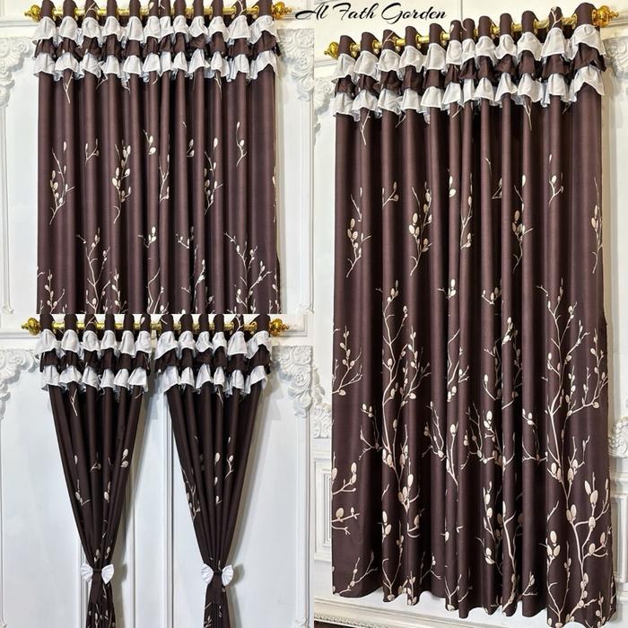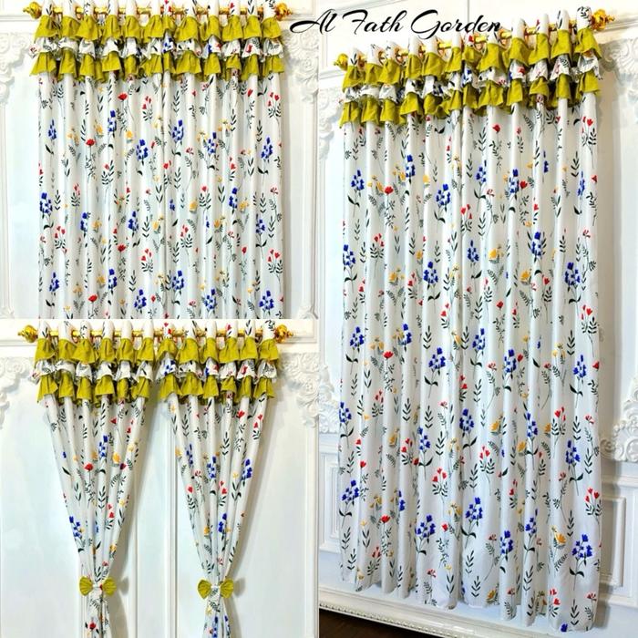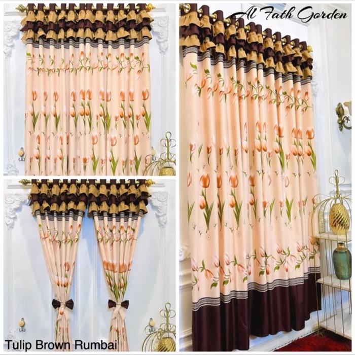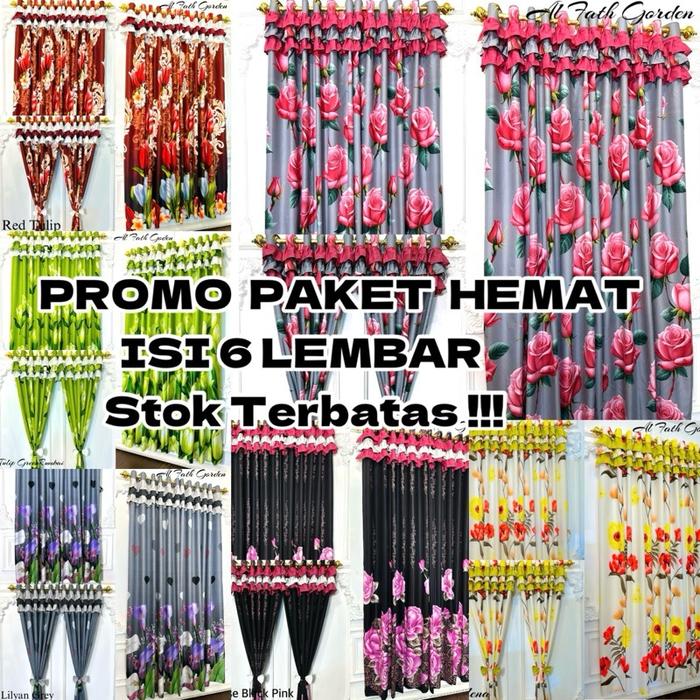 PROMO PAKET HEMAT RUMBAI ISI 6 LEMBAR(PINTU/JENDELA)KATUN CURTAIN T 220 CM L 135 CM 12 RING 6 GELOMBANG - RUMBAI TULIP ABU