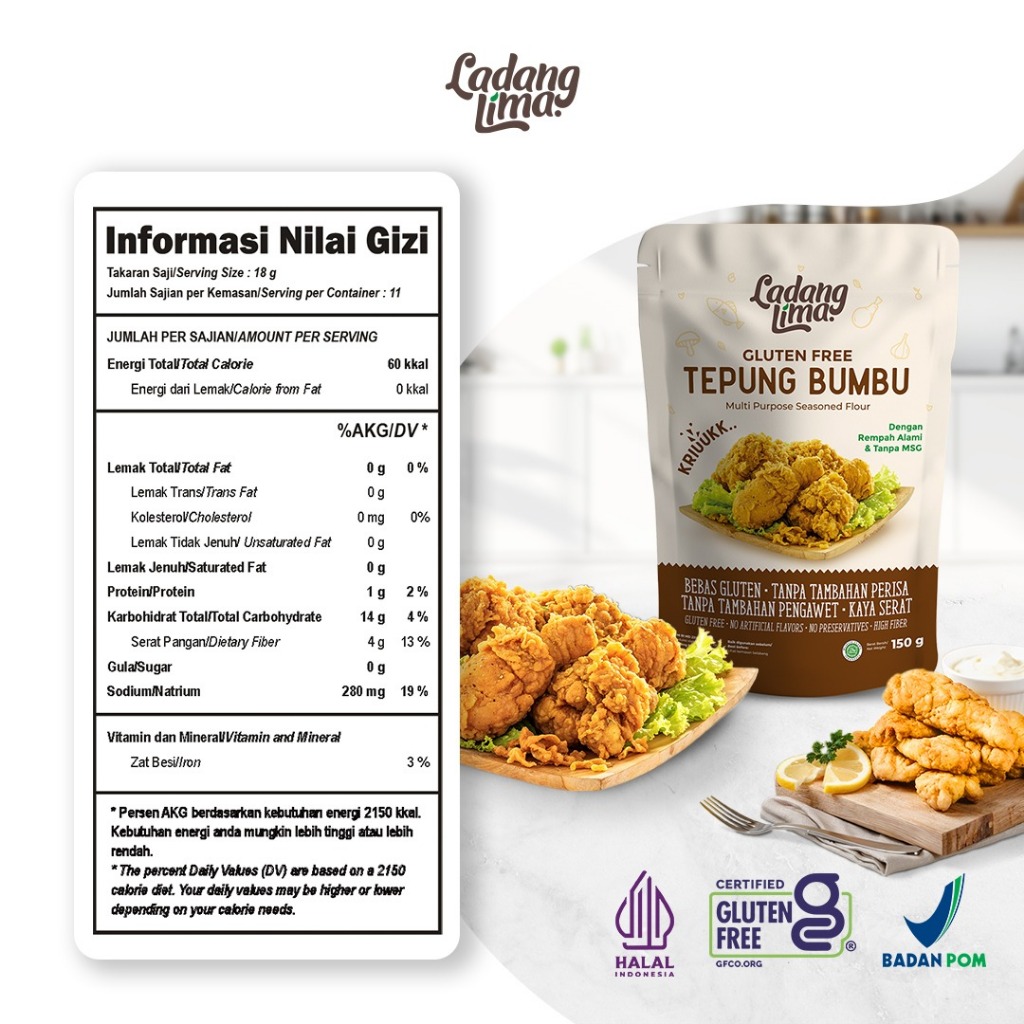 Tepung Bumbu Serbaguna 150G Ladang Lima - Rempah Alami No Msg Tepung Biang Fried Chicken Crispy