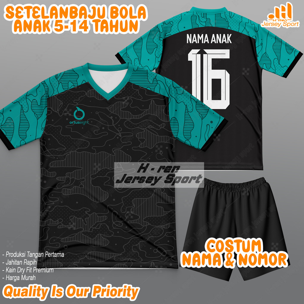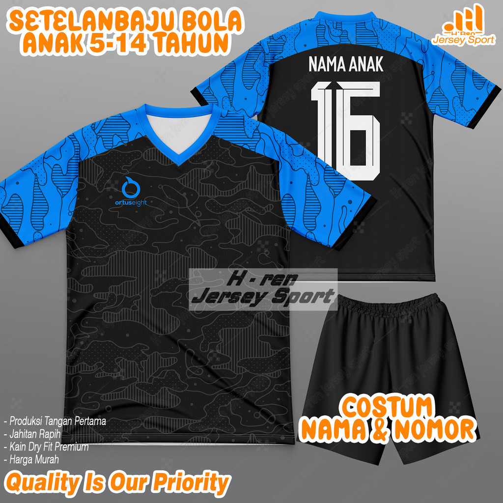 Costum sablon Nama Nomor setelan baju bola jersey anak junior terbaru kaos futsal voly SD SMP