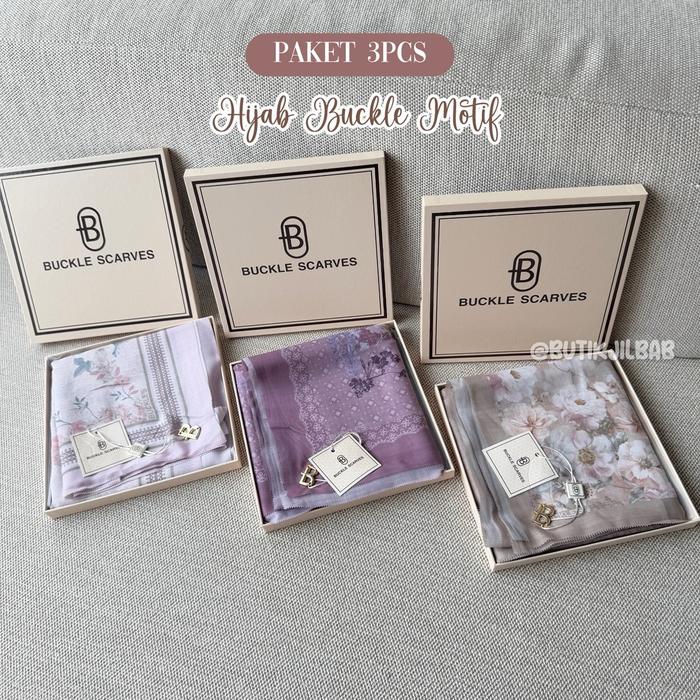 Paket Hijab Isi (3+1Pcs) Box Buckle Scarves | Packaging Box Mewah Voal Muslim Square | Free Goodiebag Kerudung Segi Empa