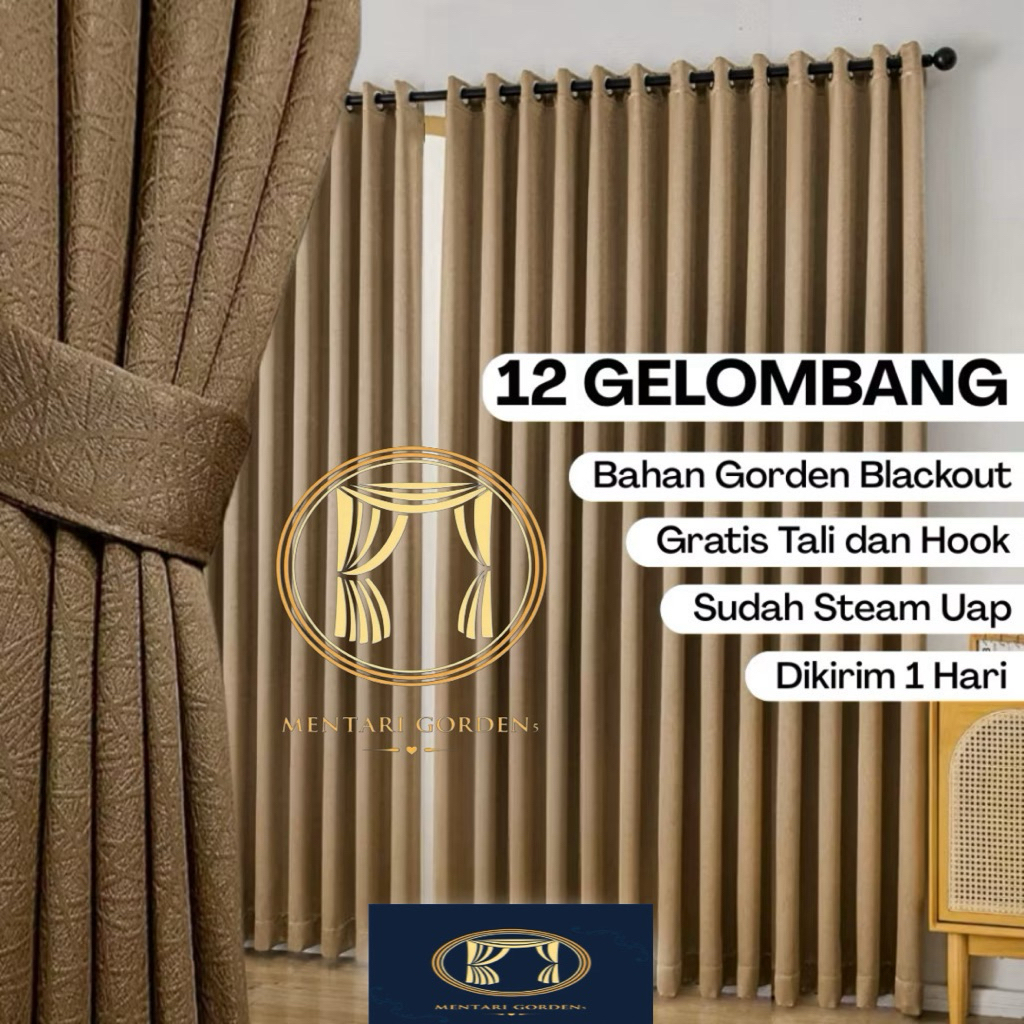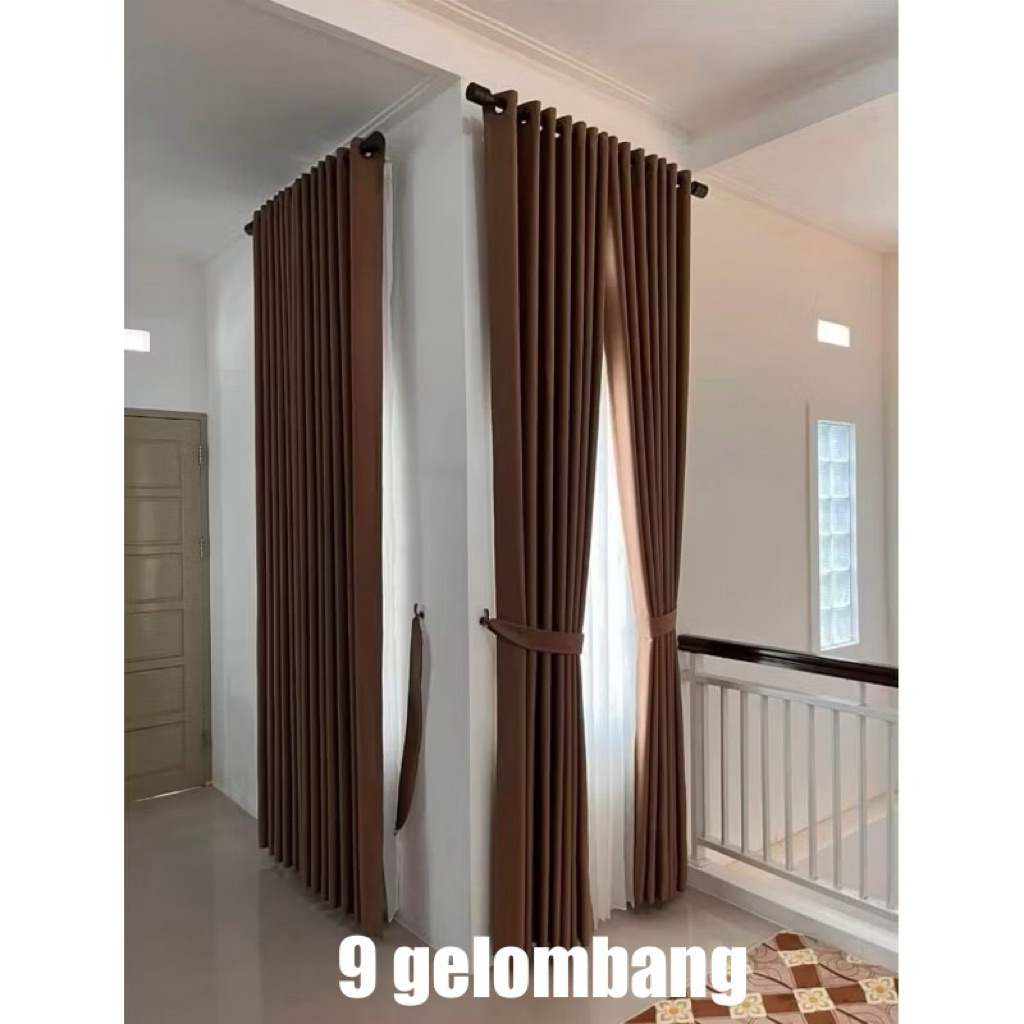 Gorden blackout polos 9 gelombang dan 12 gelombang serat abstrak depan doff belakang glossy