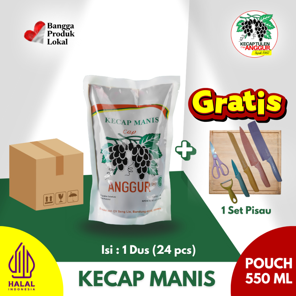 [Free 1 Set Pisau] Cap Anggur Kecap Manis Reguler 550Ml (Pouch) - 1 Karton