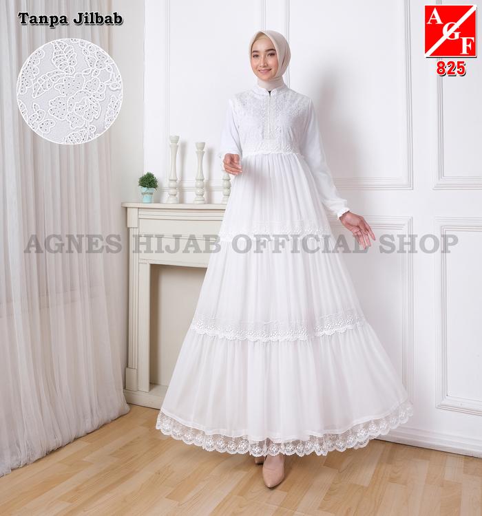 Agnes Hijab - Azzahra Dress Gamis Putih Lebaran 2026 Baju Muslim Wanita Dewasa Gaun Pesta Akad Mewah Pengajian Manasik H