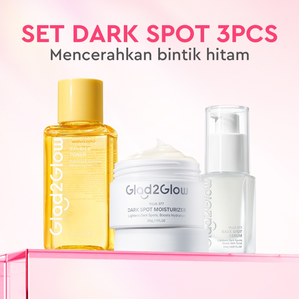 Glad2Glow 3pcs Paket Skincare- Moisturizer+Serum+Toner-Acne Kit Glowing Kit Dark Spot Barrier Bright bundle Beauty Sets