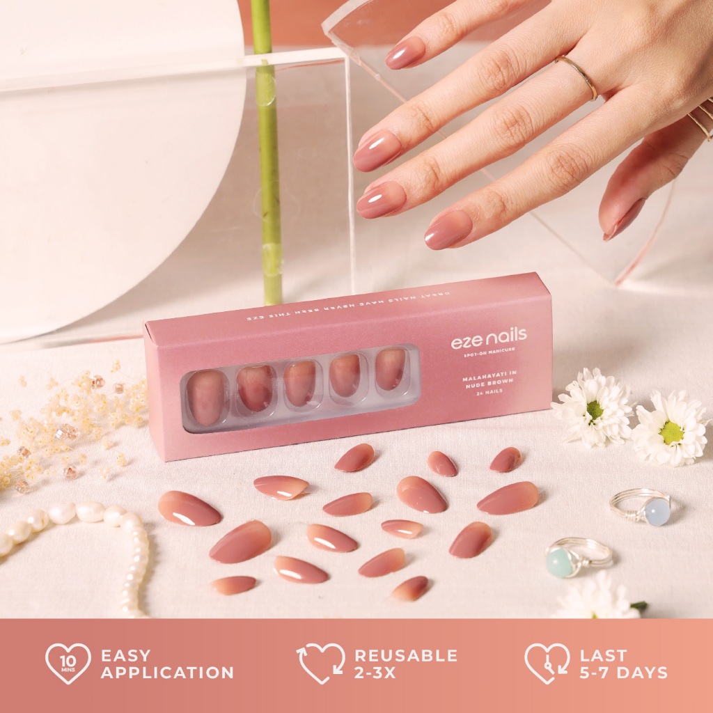 Eze Nails - Malahayati in Brown Spot on Manicure (Kuku Palsu Tempel + Jelly Bond)