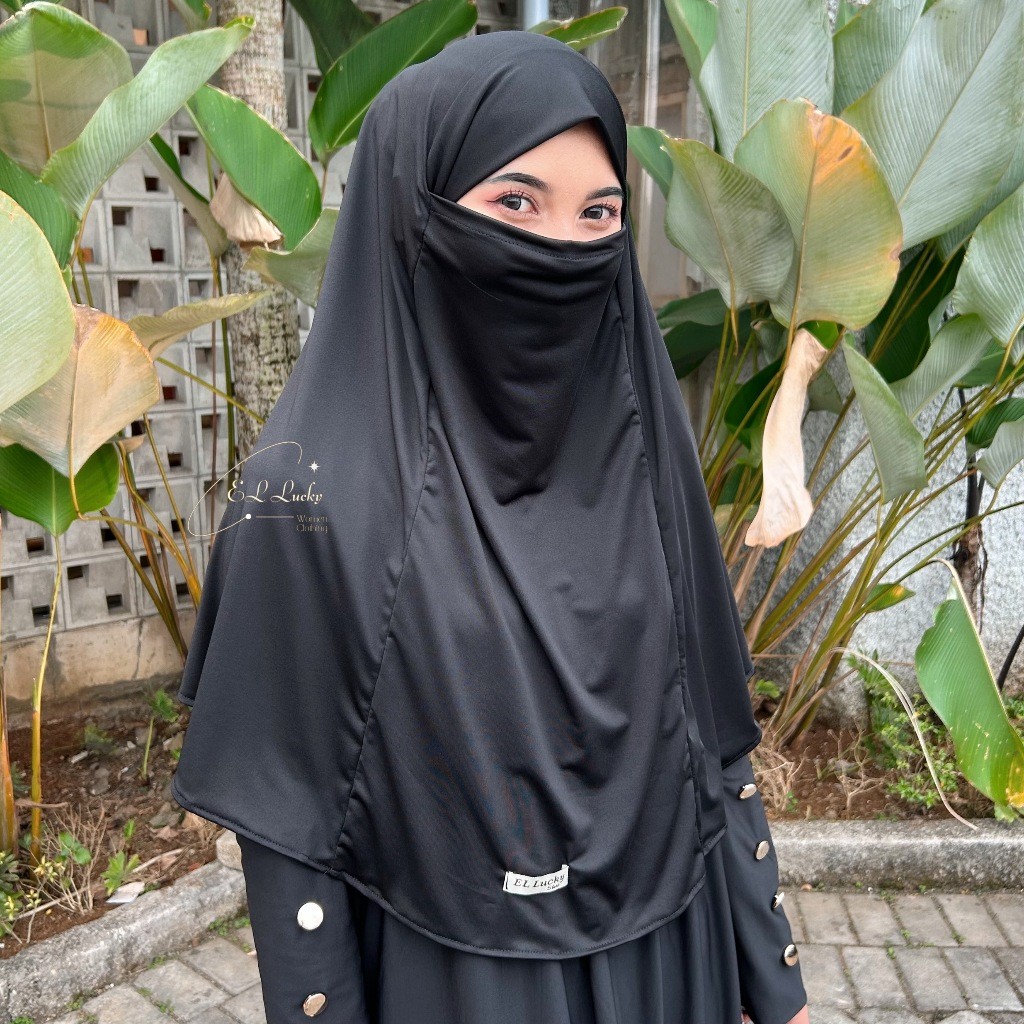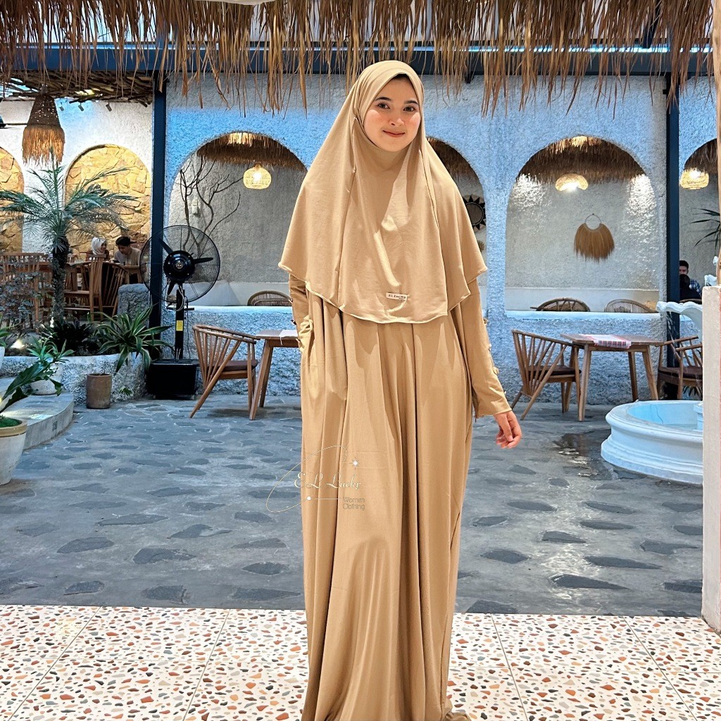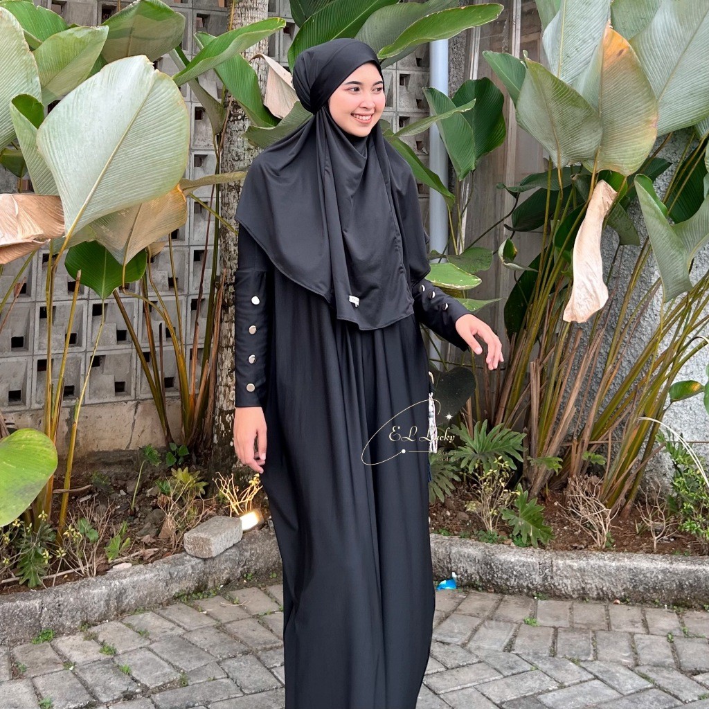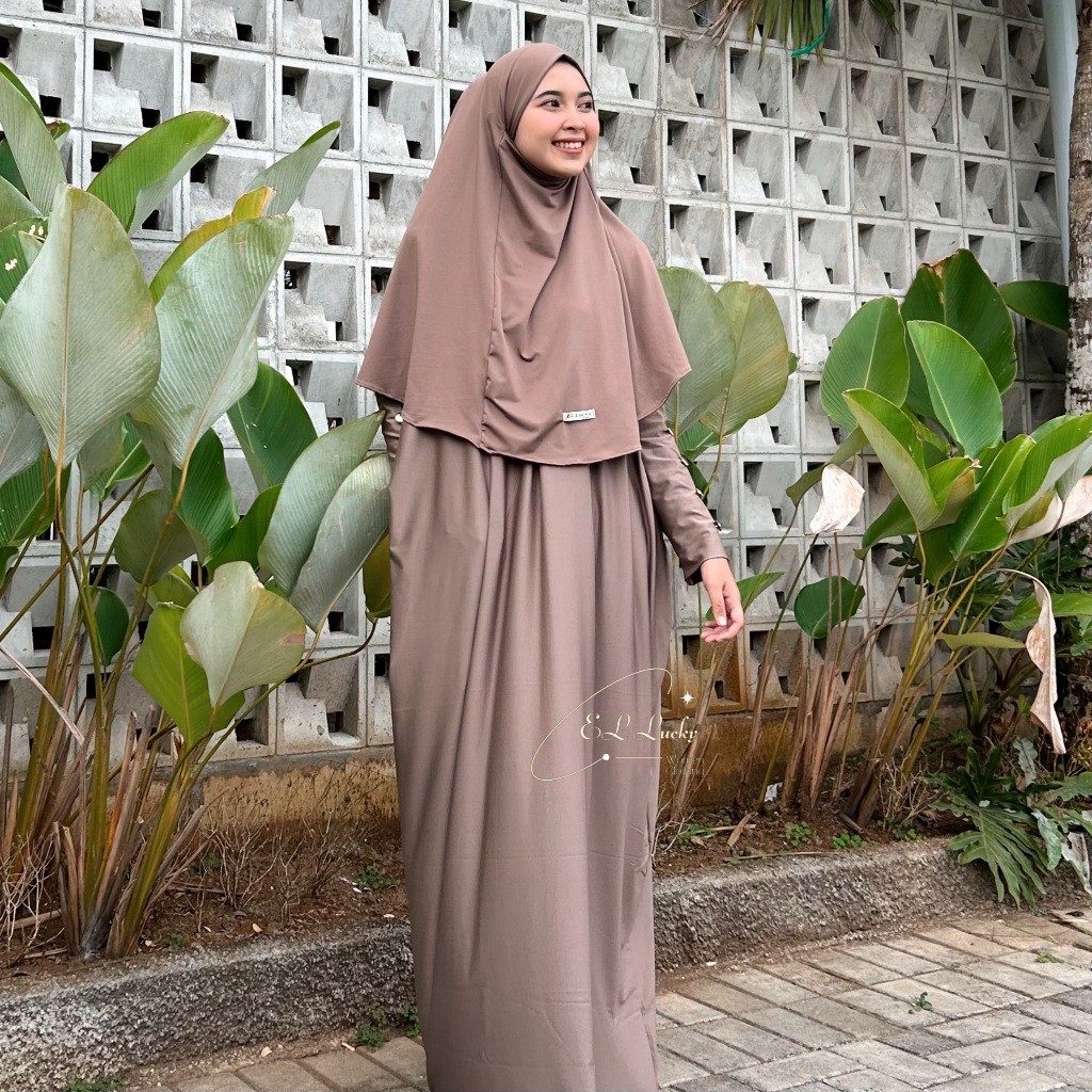 EL Lucky - Inara Abaya Set Khimar (Abaya Set Jersey dengan Kerudung French Khimar 4in1) Setelan Dress/Gamis Umroh Syari