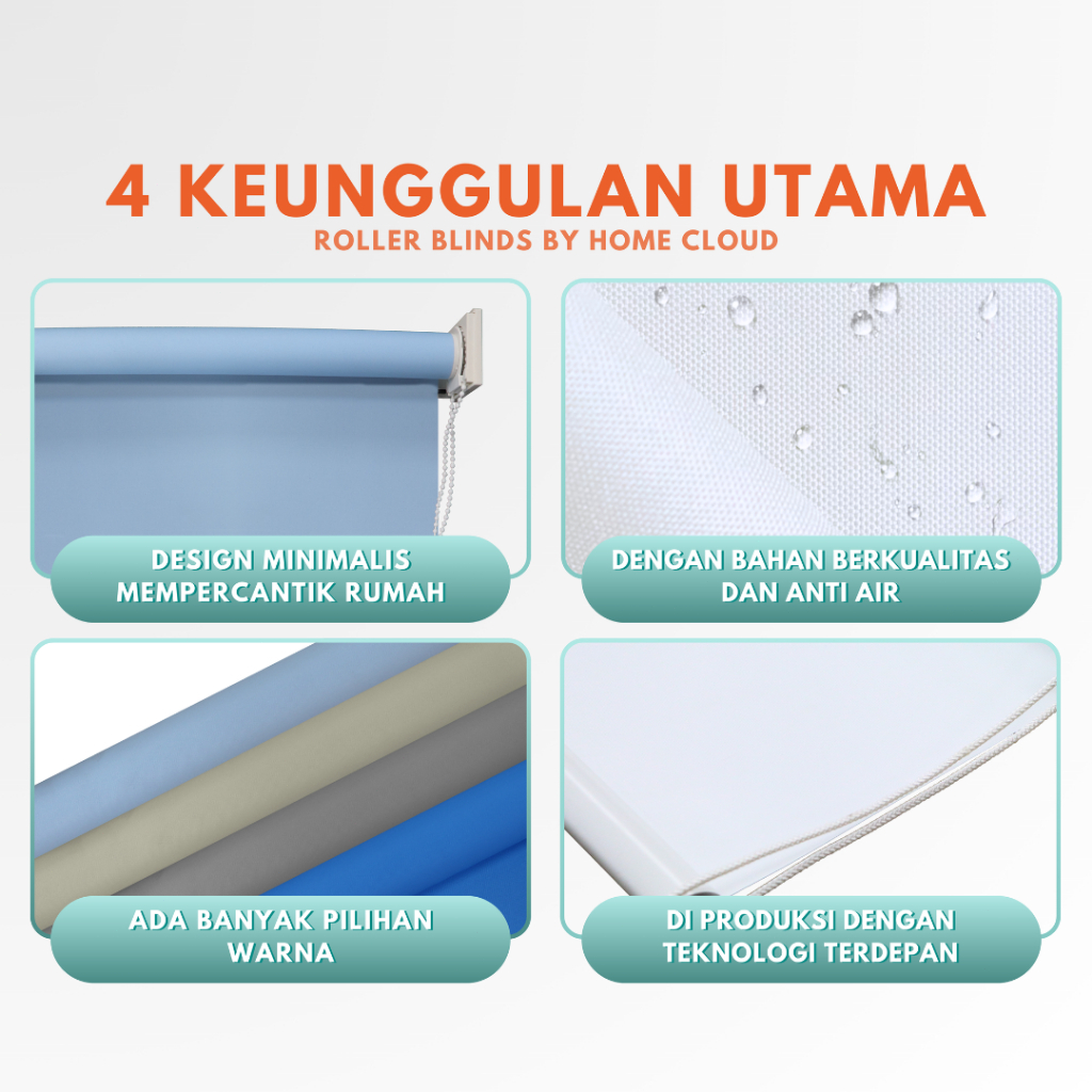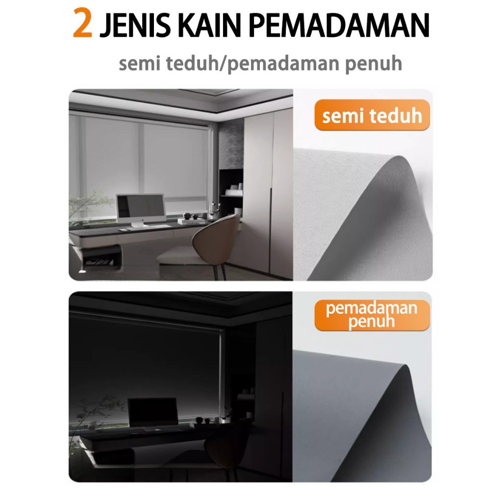 WISPACE Gorden Jendela Roller Blind Tirai Gulung Blackout100 PERSEN Blok Cahaya Custom Ukuran Tirai Jendela Minimalis Tahan Jamur Dan Noda Untuk Privasi Anda