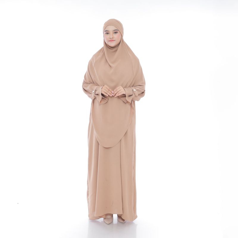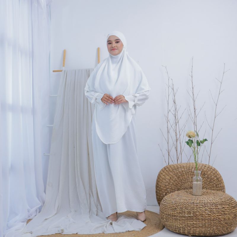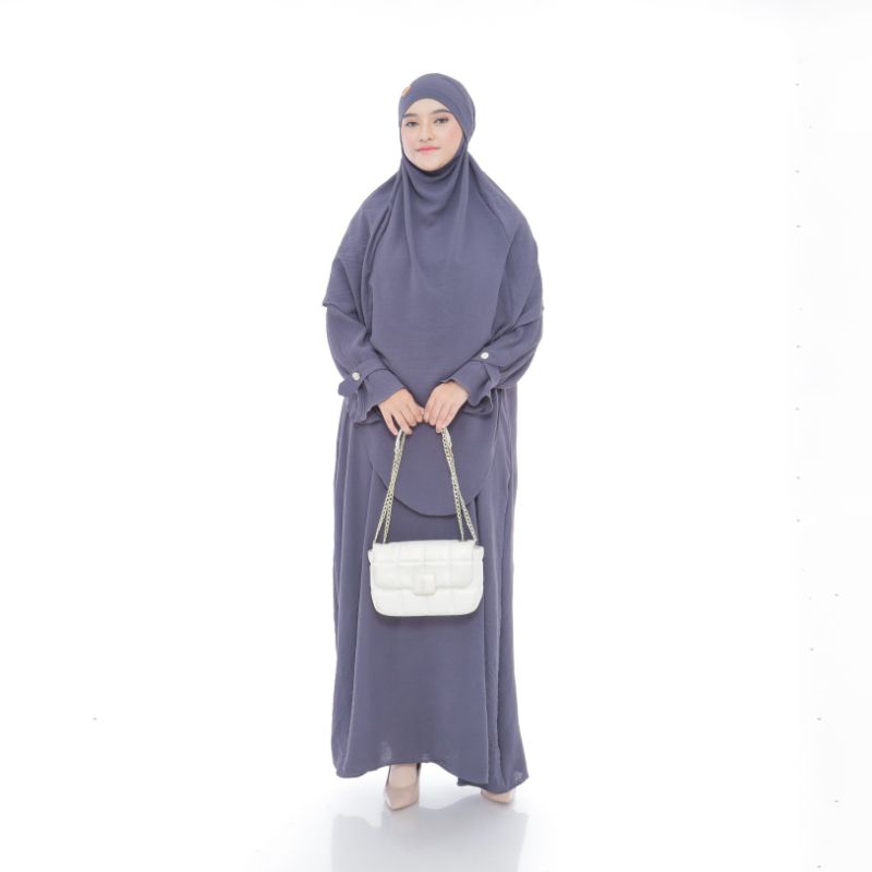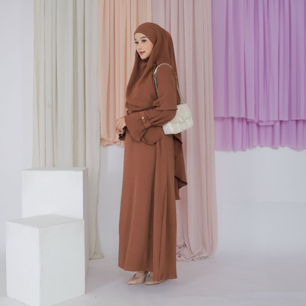 Naura Abaya Plisket Set kerudung Muslim Syari French khimar((Gamis Umroh Haji Set Kerudung dan Khimar)