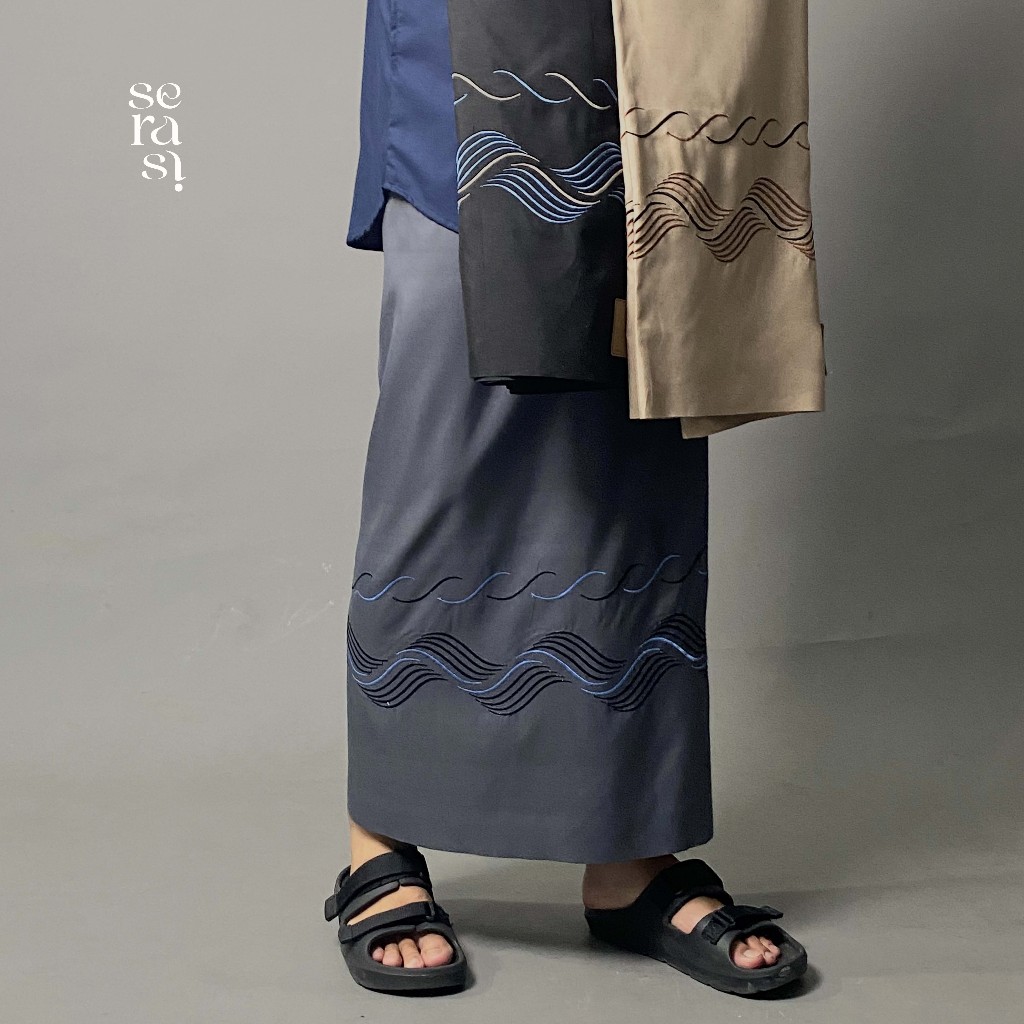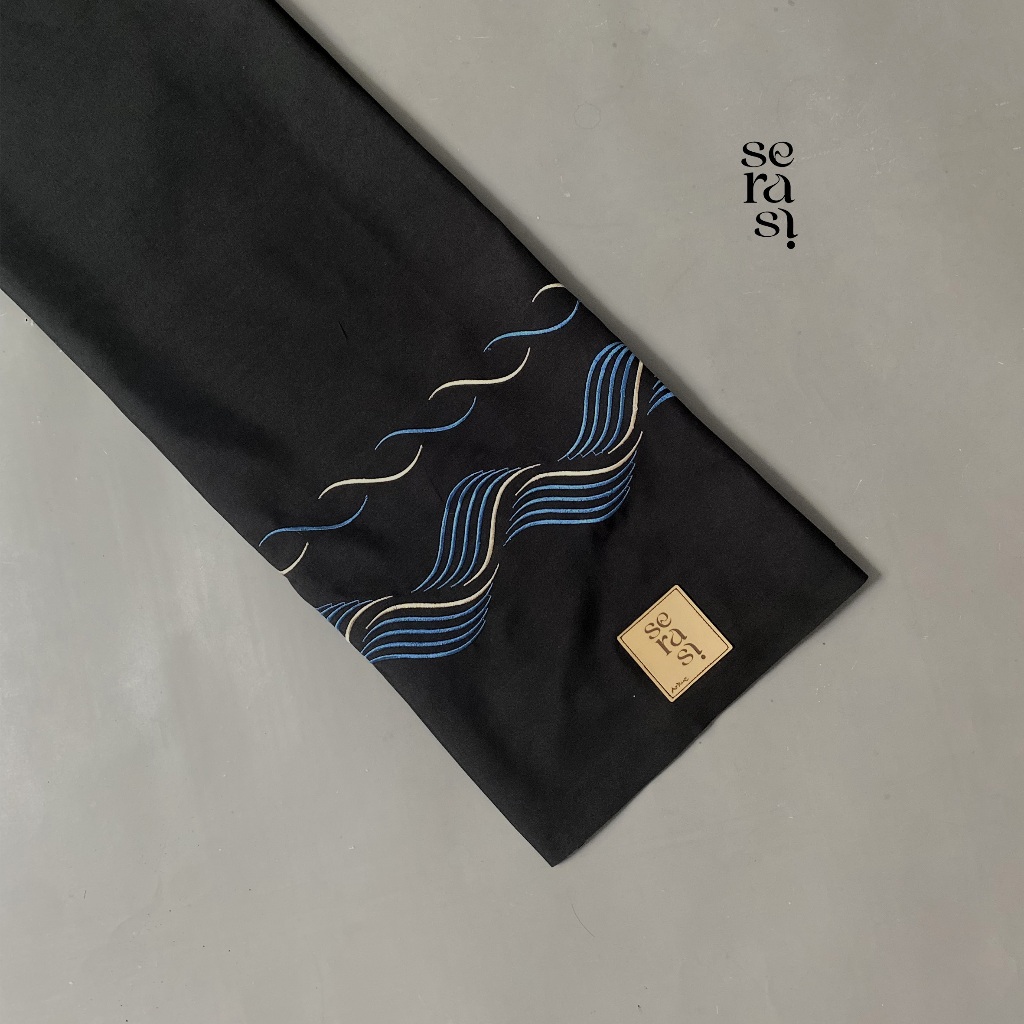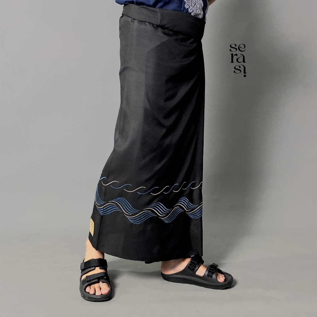 Serasi - Sarung Bordir Motif Ombak Sarung Pria Warna Hitam Bordir Sarung Sholat Bordir Timbul Bono