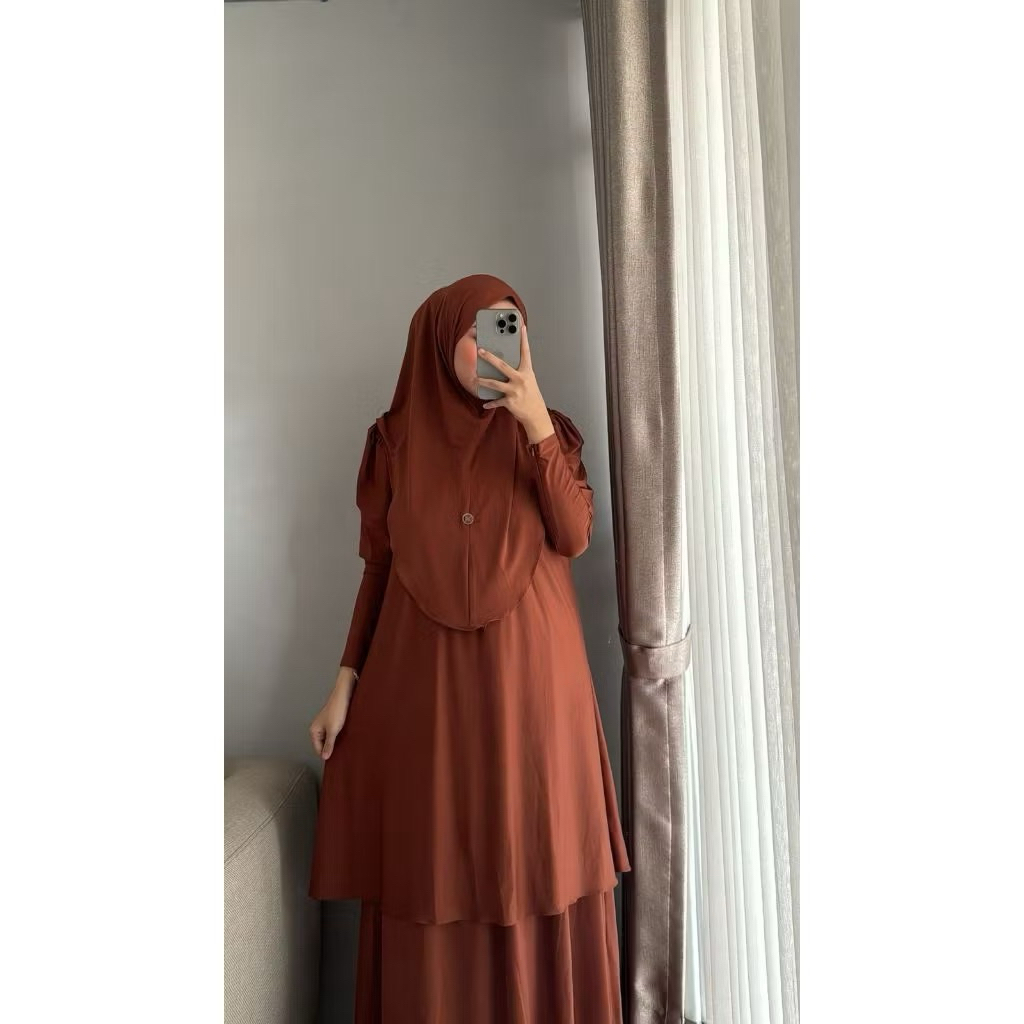 Setrok Inara Jersi Setelan Rok Muslim| Set Hijab Jersi Wanita 4 in 1 ( Tunik, Rok, Hijab, ciput )