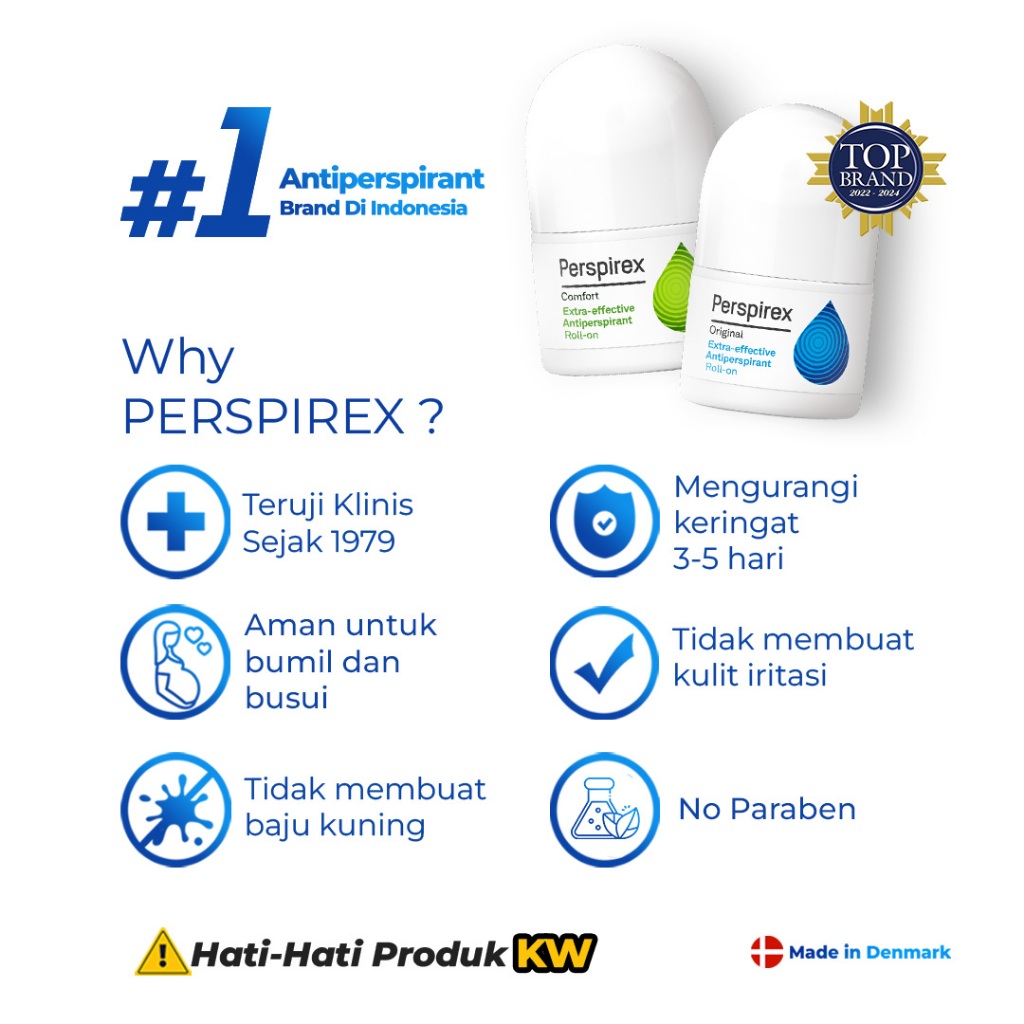 Perspirex Original AntiPerspirant Roll On - 20ml / Deodoran Perawatan Ketiak Mengurangi Keringat Berlebih dan Bau Badan