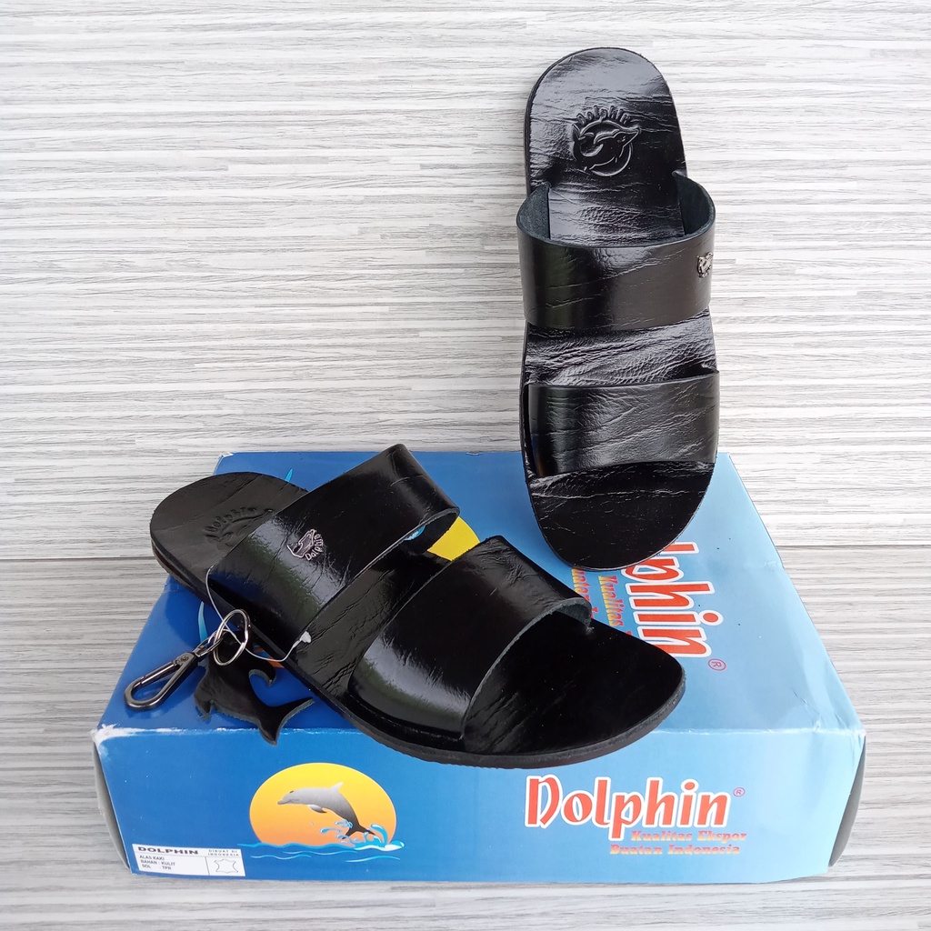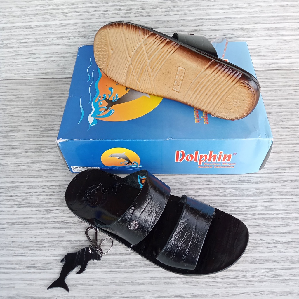 Dolphin criss sandal slide pria kulit asli original sandal pria casual tali strip dua kulit asli dolphin original