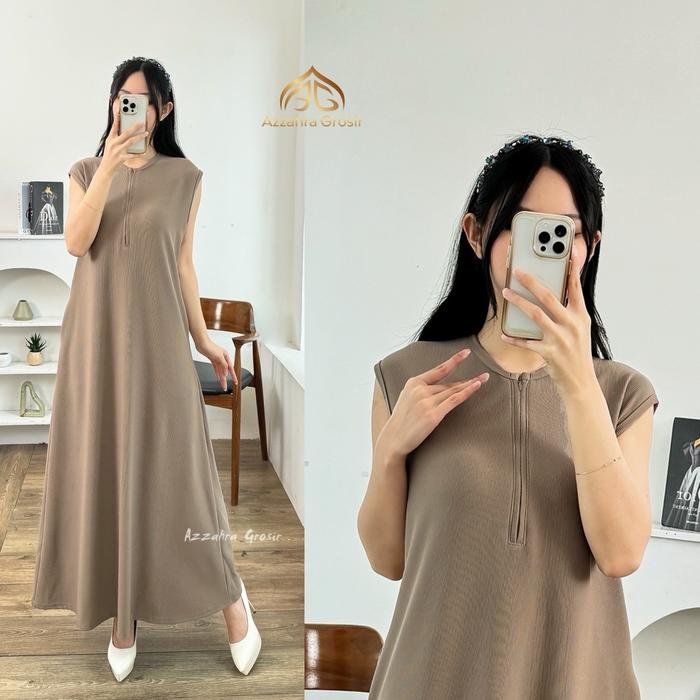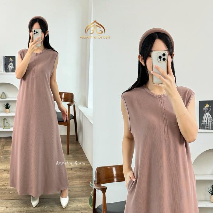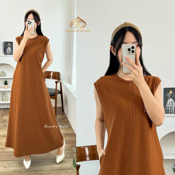 Ag - Chelsea Inner Dress Gamis Knit Inner Tanpa Lengan Homy Dress Gaun Casual Wanita Panjang - Choco, M - 718-9372