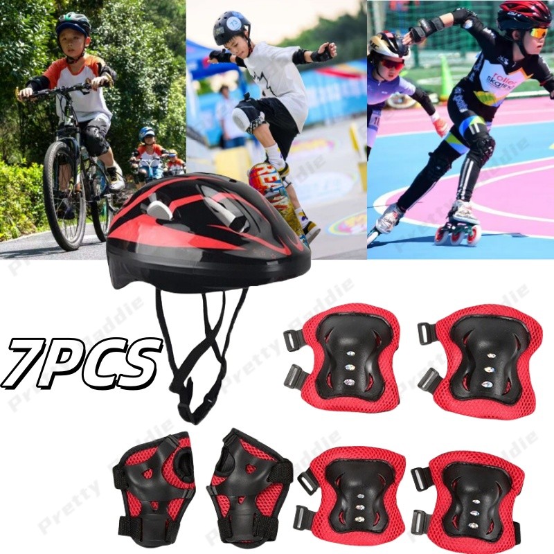 7PCS Peralatan olahraga dan rekreasi luar ruangan Pelindung lutut/tangan/sarung tangan/helm anak-anak